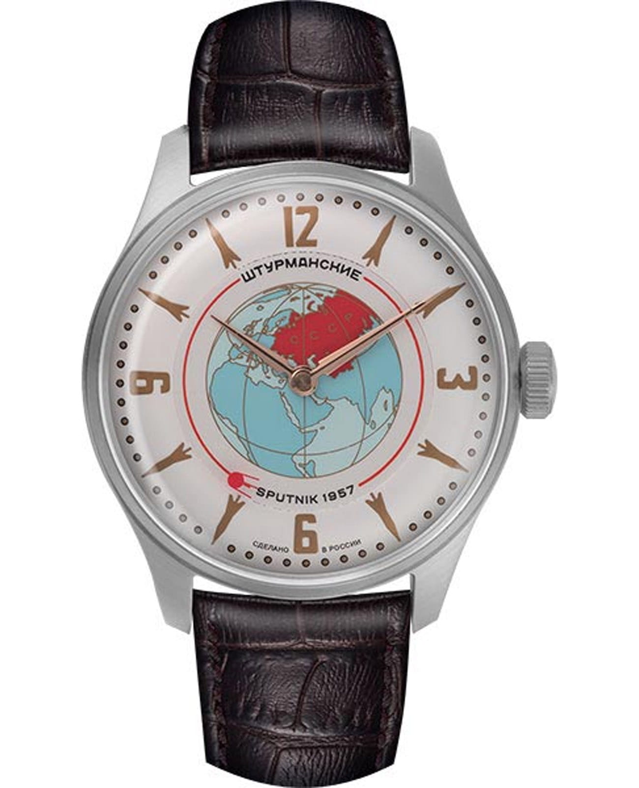 Штурманские мужские российские механические часы с минеральным стекломМинеральное стеклоМинеральное стекло представляет собой искусственно выращенный минерал кварца. Такое стекло отличается особой устойчивостью к повреждениям и царапинам. Уступает по некоторым качествам сапфировому стеклу. механизм с высокой точностью. Класс водозащиты: 50 метров, позволит защитить корпус от случайных брызг или капель дождя. Корпус часов изготовлен из стали. Кожаный ремешок на стандартной застёжке. Стрелки и метки с люминесцентным покрытиемЛюминесцентное покрытиеПозволяет считывать показания времени в темноте. Производители наносят на стрелки, часовые индексы, безель или поверхность циферблата светонакопительный состав, дающий холодное свечение..