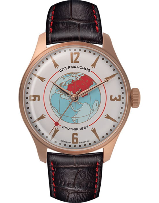 Модель посвящена запуску первого искусственного спутника Земли 4 октября 1957 года. Штурманские увековечили это революционное событие в специальной коллекции. Российские наручные часы Штурманские Спутник 2609-3739432 выводят понятия красоты, надежности и функциональности на новый, ранее недостижимый уровень. В центре циферблата расположено изображение планеты из космоса, роль секундной стрелки выполняет вращающийся диск с изображением спутника. Тем самым каждую минуту спутник делает «оборот» вокруг Земли.