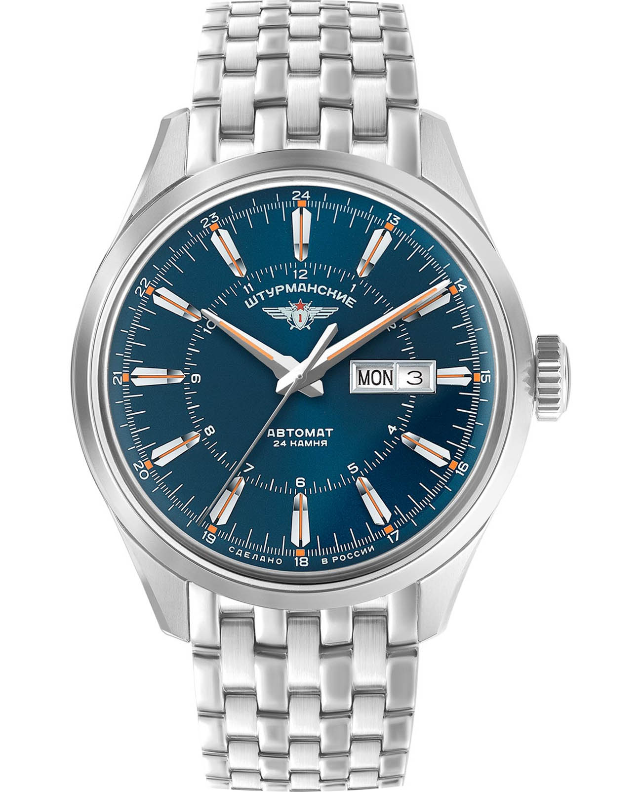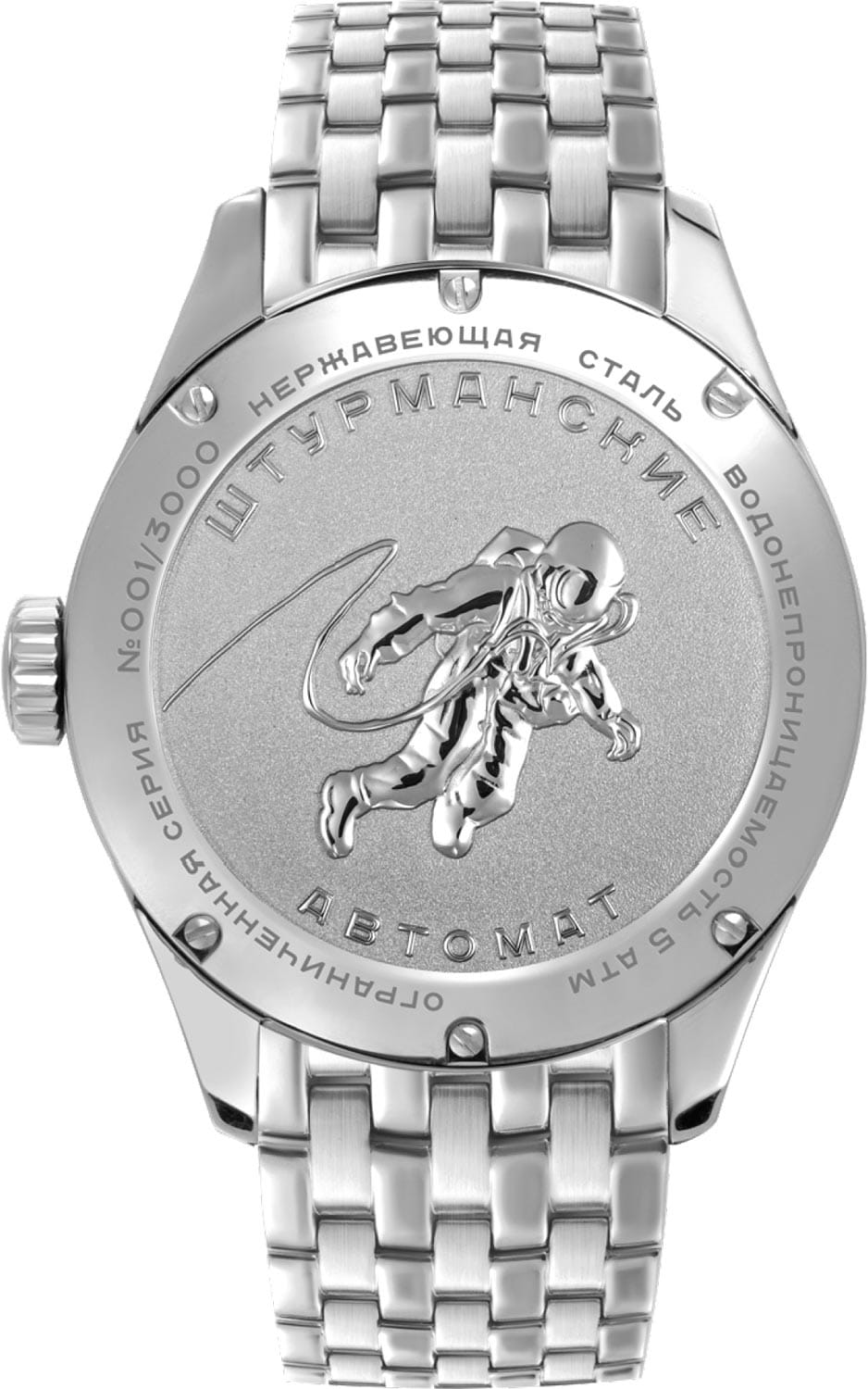 Историю вершат те, кто ради великих открытий готов переступить через страх, выйти за грани возможного. Именно для таких людей создана лимитированная линейка часов Открытый Космос Автомат. Прообраз всей коллекции – часы Алексея Леонова, с которыми он впервые в истории человечества вышел в открытый космос. Лимитированные мужские российские механические часы Штурманские Открытый Космос NH36/1891771b, механический механизм (автоматический калибр) с высокой точностью. Минеральное стеклоМинеральное стеклоМинеральное стекло представляет собой искусственно выращенный минерал кварца. Такое стекло отличается особой устойчивостью к повреждениям и царапинам. Уступает по некоторым качествам сапфировому стеклу. устойчивое к появлению царапин, обладающее высокой прозрачностью. Класс водозащиты: 50 метров, позволит защитить корпус от случайных брызг или капель дождя. Корпус часов изготовлен из стали. Стальной браслет на раскладной застёжкеРаскладная застёжкаТакой тип застёжки используется только на браслетах из металла. Она никогда не раскрывается полностью, происходит разделение на 2 и более частей. Раскладывающая застёжка снизит вероятность потери часов к минимуму.. Стрелки и метки с люминесцентным покрытиемЛюминесцентное покрытиеПозволяет считывать показания времени в темноте. Производители наносят на стрелки, часовые индексы, безель или поверхность циферблата светонакопительный состав, дающий холодное свечение.. Окошко даты находится в положении 3 часа.