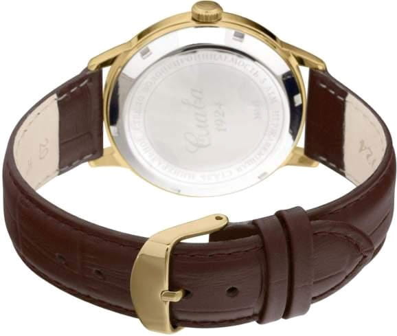 Российские механические наручные часы Слава 1459055/8215-300, которые станут идеальным аксессуаром для повседневного ношения. Эти часы сочетают в себе элегантность и практичность, предлагая безупречный стиль и надежность. Оснащенные механизмом Miyota 8215 с автоподзаводом, они обеспечивают точность и долговечность, поддерживая запас хода до 42 часов. Стальной корпус с IP-покрытиемIP-покрытиеМетод ионного напыления. Демонстрирует повышенную устойчивость к истиранию, окислению и химическим веществам. Под воздействием высокого давления и температуры около 1500°C молекулы металла надёжно соединяются с частицами корпуса часов. и минеральным стекломМинеральное стеклоМинеральное стекло представляет собой искусственно выращенный минерал кварца. Такое стекло отличается особой устойчивостью к повреждениям и царапинам. Уступает по некоторым качествам сапфировому стеклу. защищает золотистый циферблат, выполненный по технологии Sunray. Стрелки  в стиле Baton с люминесцентным покрытиемЛюминесцентное покрытиеПозволяет считывать показания времени в темноте. Производители наносят на стрелки, часовые индексы, безель или поверхность циферблата светонакопительный состав, дающий холодное свечение. облегчают чтение времени даже в условиях слабого освещения. На циферблате изображены герб Российской Федерации и автограф В.В. Путина. Часы также имеют календарь с окошком даты на 3 часах и водозащиту до 50WR, что делает их надежными в различных условиях. Текстурированный кожаный ремешок с классической застежкой завершает этот изысканный образ.
