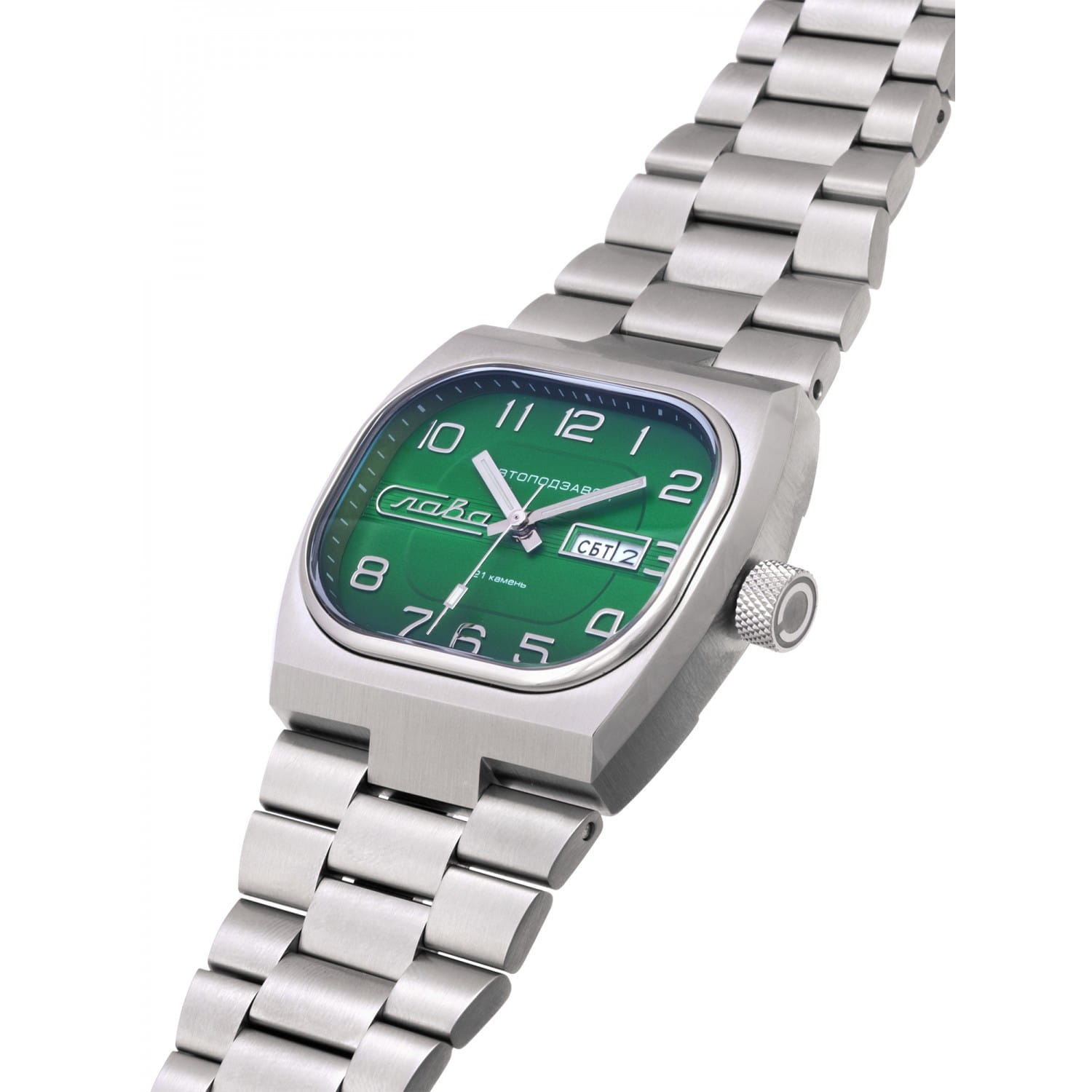 Российские часы Слава 3045709/100-8205 оснащены механизмом Miyota 8205, что обеспечивает исключительную надежность и точность хода. Корпус и браслет часов выполнены из стали, что придает им долговечность и устойчивость к внешним воздействиям. Сапфировое стеклоСапфировое стеклоПрочный и надёжный материал из кристалла сапфира синтетического происхождения, характеризующийся особой твёрдостью и устойчивостью к царапинам и повреждениям.. Класс водозащиты часов составляет 100 метров, позволит плавать, нырять и заниматься другими водными видами спорта. Эти часы идеально подойдут для повседневного использования, сочетая в себе стиль, надежность и функциональность. Стрелки с люминесцентным покрытиемЛюминесцентное покрытиеПозволяет считывать показания времени в темноте. Производители наносят на стрелки, часовые индексы, безель или поверхность циферблата светонакопительный состав, дающий холодное свечение.. Окошки дня недели и даты находятся в положении 3 часа. Стальной браслет на раскладной застёжкеРаскладная застёжкаТакой тип застёжки используется только на браслетах из металла. Она никогда не раскрывается полностью, происходит разделение на 2 и более частей. Раскладывающая застёжка снизит вероятность потери часов к минимуму..