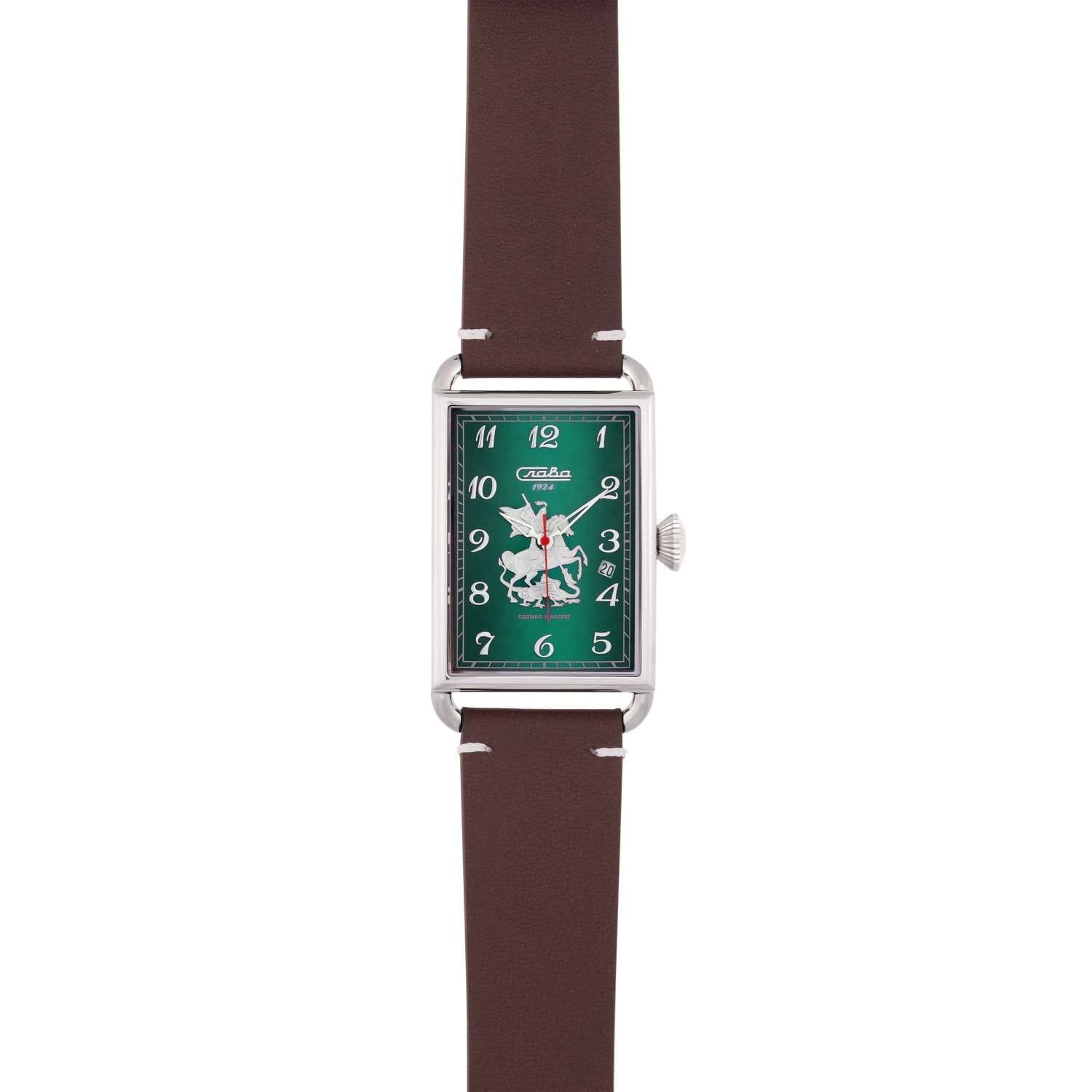 Часы Слава Москва 8700783/300-2414 — это воплощение элегантности и стиля, которое станет идеальным дополнением к вашему деловому гардеробу. Созданные в России, они оснащены надежным механическим механизмом калибра Слава 2414. Корпус выполнен из высококачественной стали, что обеспечивает долговечность и изысканный внешний вид. Зеленый циферблат украшен изображением Георгия Победоносца и защищен прочным сапфировым стекломСапфировое стеклоПрочный и надёжный материал из кристалла сапфира синтетического происхождения, характеризующийся особой твёрдостью и устойчивостью к царапинам и повреждениям., которое устойчиво к царапинам. Арабские цифры и окошко даты, расположенное между отметками 3 и 4 часа, добавляют функциональности и удобства в использовании. Задняя крышка, крепящаяся на 4 винтах, украшена надписью «Москва», подчеркивая уникальность и оригинальность модели. Кожаный ремешок с классической застежкой и системой быстрой замены не только обеспечивает комфорт, но и позволяет легко менять его по вашему желанию. Часы обладают водозащитой 50WR, что делает их подходящими для ежедневного ношения. Компактные габариты и вес в 70 грамм делают их удобными и практически незаметными на запястье. Эта лимитированная серия выпущена в количестве всего 500 экземпляров, что придает особую ценность и эксклюзивность вашему выбору. Часы поставляются в стильной подарочной упаковке, что делает их отличным подарком для ценителей высокого качества и утонченного дизайна.