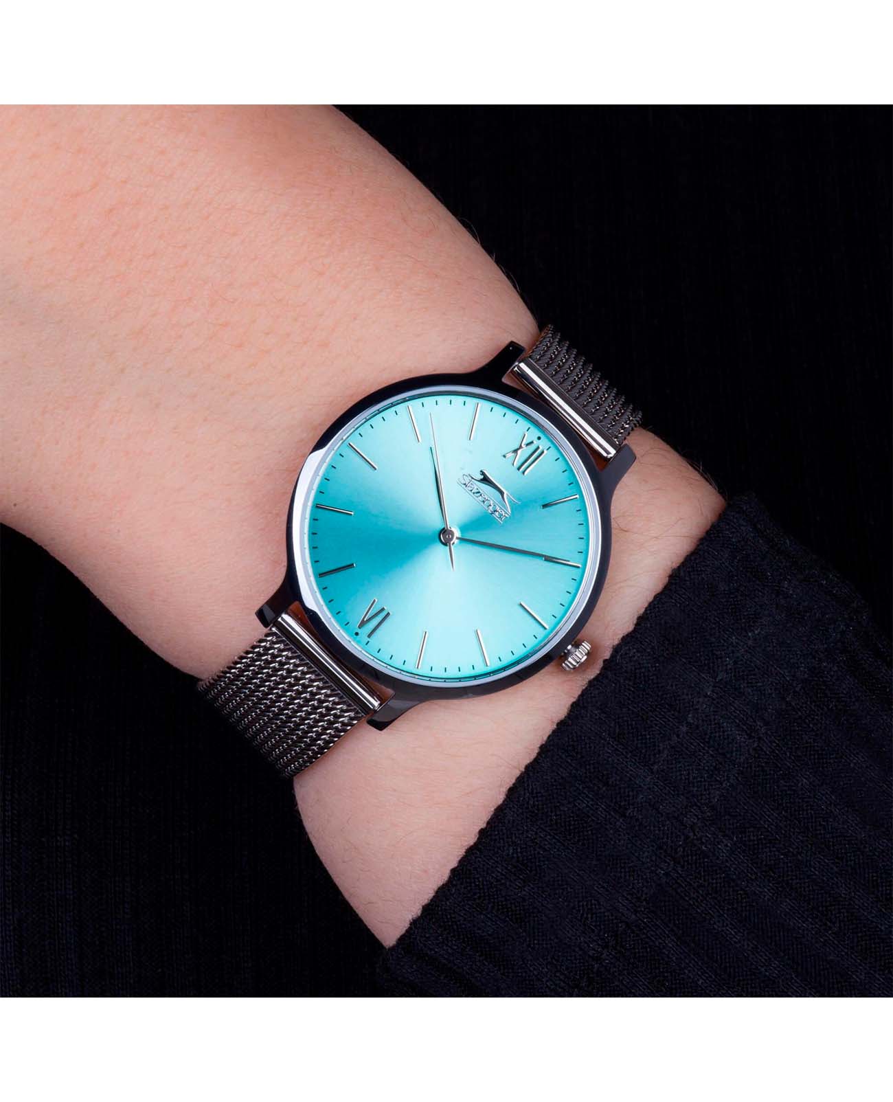 Элегантные женские часы Slazenger SL.09.1823.2.06 сочетают классический дизайн и современные технологии. Модель имеет круглый корпус диаметром 34 мм, изготовленный из суперметалла, что обеспечивает высокую устойчивость к внешним воздействиям. Браслет выполнен в технике миланского плетения из стали на раскладном замкеРаскладной замокДанный вариант застежки используется только на часах с металлическим браслетом. Отличительная особенность такого крепления в том, что длина браслета становится универсальной и вы можете самостоятельно отрегулировать нужный вам размер – застежка просто двигается по браслету часов., гарантирующей комфортное ношение и безопасность. Циферблат голубого цвета декорирован римскими цифрами и стрелками, создавая благородный внешний вид. Для защиты используется минеральное стекло Минеральное стеклоМинеральное стеклоМинеральное стекло представляет собой искусственно выращенный минерал кварца. Такое стекло отличается особой устойчивостью к повреждениям и царапинам. Уступает по некоторым качествам сапфировому стеклу., обеспечивающее прочную защиту от царапин. Часы имеют водозащиту до 30 метров, что делает их подходящими для повседневного использования, но не рекомендуется для плавания или дайвинга. Часы работают на кварцевом механизме, обеспечивающем точное время без необходимости подзаводки. SL.09.1823.2.06 — это стильный аксессуар, который отлично дополнит как деловой, так и casual образ.