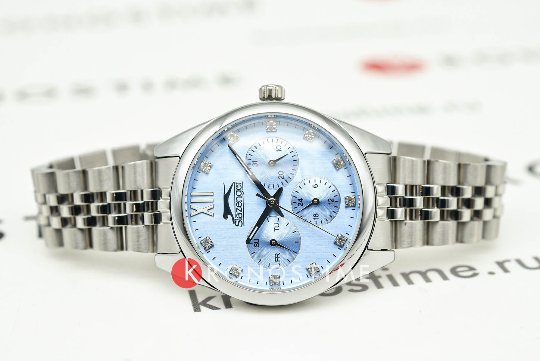 Женские наручные часы Slazenger SL.09.1990.4.06 сочетают в себе элегантный дизайн и практичность современных технологий. Модель обладает круглым корпусом диаметром 34 мм, изготовленным из суперметалла, что обеспечивает высокую устойчивость к внешним воздействиям. Браслет выполнен из того же материала на раскладной застёжкеРаскладная застёжкаТакой тип застёжки используется только на браслетах из металла. Она никогда не раскрывается полностью, происходит разделение на 2 и более частей. Раскладывающая застёжка снизит вероятность потери часов к минимуму., гарантирующей комфортное ношение. Циферблат оснащен индексами для лучшей читаемости времени и дополнен функцией отображения даты. Для защиты применяется минеральное стеклоМинеральное стеклоМинеральное стекло представляет собой искусственно выращенный минерал кварца. Такое стекло отличается особой устойчивостью к повреждениям и царапинам. Уступает по некоторым качествам сапфировому стеклу., обеспечивающее прочную защиту от царапин. Часы работают на японском кварцевом механизме, который питается от батарейки и гарантирует точное время без необходимости подзаводки. Водонепроницаемость составляет 3 атмосферы (30 метров), что позволяет использовать их в повседневной жизни, но не рекомендуется для плавания или занятий водными видами спорта.