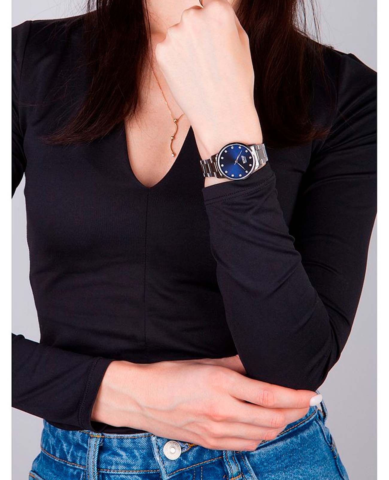Женские наручные часы Slazenger SL.09.2071.3.05 сочетают в себе элегантный дизайн и практичность современных технологий. Модель обладает круглым корпусом диаметром 32 мм, изготовленным из суперметалла, что обеспечивает высокую устойчивость к внешним воздействиям. Браслет выполнен из того же материала с раскладной застежкойРаскладной замокДанный вариант застежки используется только на часах с металлическим браслетом. Отличительная особенность такого крепления в том, что длина браслета становится универсальной и вы можете самостоятельно отрегулировать нужный вам размер – застежка просто двигается по браслету часов., гарантирующей комфортное ношение и безопасность. Циферблат серебристого цвета украшен кристаллами, добавляя модели особую изысканность. Для защиты используется минеральное стеклоМинеральное стеклоМинеральное стекло представляет собой искусственно выращенный минерал кварца. Такое стекло отличается особой устойчивостью к повреждениям и царапинам. Уступает по некоторым качествам сапфировому стеклу., обеспечивающее прочную защиту от царапин. Часы работают на японском кварцевом механизме, что гарантирует точное время без необходимости подзаводки . Водонепроницаемость часов достигает 3 атмосфер (30 метров), что позволяет использовать их при контакте с брызгами воды, однако не рекомендуется для плавания или дайвинга.