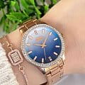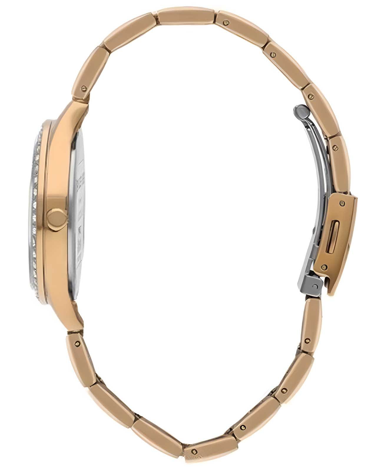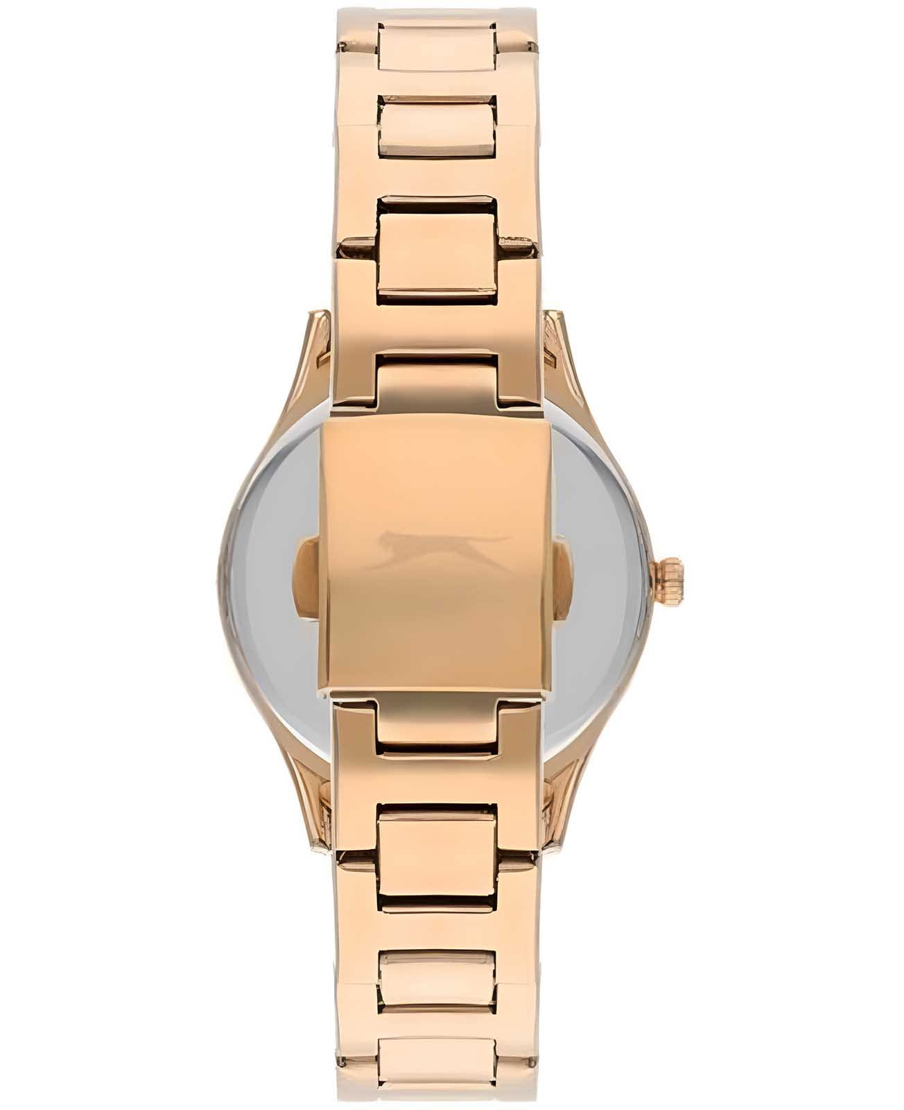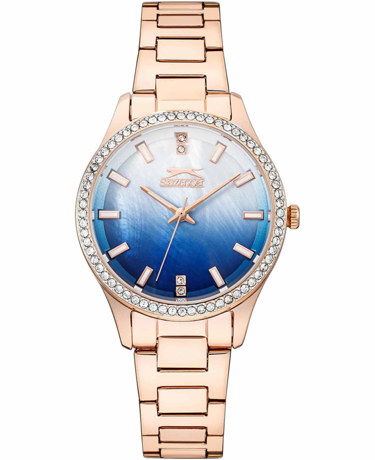 Элегантные наручные женские часы Slazenger SL.09.2222.3.04 созданы для тех, кто ценит стиль и изящество в каждом аксессуаре. Корпус диаметром 34 мм сделан из прочного металла с износостойким розово-золотистым IP-покрытиемIP-покрытиеМетод ионного напыления. Демонстрирует повышенную устойчивость к истиранию, окислению и химическим веществам. Под воздействием высокого давления и температуры около 1500°C молекулы металла надёжно соединяются с частицами корпуса часов., а безельБезельВнешний ободок, закрепляющий стекло. В спортивных часах так называется поворотное кольцо с делениями на циферблате, выполняет роль таймера – замеряет отрезки времени на шкале. Неподвижный безель – элемент декора. Однонаправленно вращающийся безель на дайверских часах позволяет фиксировать моменты погружения и выныривания на поверхность. усыпан фианитами, что придаёт аксессуару современный вид и долговечность. Циферблат украшен бело-синей градиентной отделкой и изящными фианитами, придающими модели особый блеск и шарм. Кварцевый механизм обеспечивает точность хода, а минеральное стеклоМинеральное стеклоМинеральное стекло представляет собой искусственно выращенный минерал кварца. Такое стекло отличается особой устойчивостью к повреждениям и царапинам. Уступает по некоторым качествам сапфировому стеклу. надежно защищает часы от случайных повреждений. Металлический браслет с розово-золотистым IP-покрытиемIP-покрытиеМетод ионного напыления. Демонстрирует повышенную устойчивость к истиранию, окислению и химическим веществам. Под воздействием высокого давления и температуры около 1500°C молекулы металла надёжно соединяются с частицами корпуса часов. снабжен удобной раскладной застёжкойРаскладная застёжкаТакой тип застёжки используется только на браслетах из металла. Она никогда не раскрывается полностью, происходит разделение на 2 и более частей. Раскладывающая застёжка снизит вероятность потери часов к минимуму., что гарантирует комфортное ношение на запястье. Стрелки и метки снабжены люминесцентным покрытиемЛюминесцентное покрытиеПозволяет считывать показания времени в темноте. Производители наносят на стрелки, часовые индексы, безель или поверхность циферблата светонакопительный состав, дающий холодное свечение., что позволяет легко считывать время в темноте. Водозащита 3 ATM позволяет не беспокоиться о случайных брызгах и попадании влаги. Толщина корпуса составляет всего 10 мм, благодаря чему часы изящно смотрятся на запястье и не доставляют дискомфорта при носке. Эта модель станет отличным выбором для повседневных образов и особых случаев, подчеркивая индивидуальность и безупречный вкус своей обладательницы.