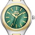 Часы Slazenger SL.09.2254.3.08 — это стильный и надежный аксессуар, который подчеркнет ваш индивидуальный образ. Корпус и браслет выполнены из инновационного суперметалла — сплава на основе меди с пониженным содержанием цинка и никеля, обладающего особой прочностью и долговечностью благодаря специальной технологии покрытия, а на безельБезельВнешний ободок, закрепляющий стекло. В спортивных часах так называется поворотное кольцо с делениями на циферблате, выполняет роль таймера – замеряет отрезки времени на шкале. Неподвижный безель – элемент декора. Однонаправленно вращающийся безель на дайверских часах позволяет фиксировать моменты погружения и выныривания на поверхность. нанесено золотистое IP-покрытиеIP-покрытиеМетод ионного напыления. Демонстрирует повышенную устойчивость к истиранию, окислению и химическим веществам. Под воздействием высокого давления и температуры около 1500°C молекулы металла надёжно соединяются с частицами корпуса часов.. Модель оснащена точным кварцевым механизмом, который обеспечивает стабильную работу и не требует ежедневного завода. Под прочным минеральным стекломМинеральное стеклоМинеральное стекло представляет собой искусственно выращенный минерал кварца. Такое стекло отличается особой устойчивостью к повреждениям и царапинам. Уступает по некоторым качествам сапфировому стеклу. расположен лаконичный перламутровый зеленый циферблат, придающий часам элегантный и современный вид. Стальной браслет с частичным золотистым IP-покрытиемIP-покрытиеМетод ионного напыления. Демонстрирует повышенную устойчивость к истиранию, окислению и химическим веществам. Под воздействием высокого давления и температуры около 1500°C молекулы металла надёжно соединяются с частицами корпуса часов. с раскладной застёжкойРаскладная застёжкаТакой тип застёжки используется только на браслетах из металла. Она никогда не раскрывается полностью, происходит разделение на 2 и более частей. Раскладывающая застёжка снизит вероятность потери часов к минимуму. обеспечивает комфортную посадку. Диаметр корпуса составляет 32 мм, толщина — 8 мм, что делает часы аккуратными и удобными для повседневного ношения. Класс водозащиты 3 атмосферы защищает механизм от случайных брызг и капель дождя.