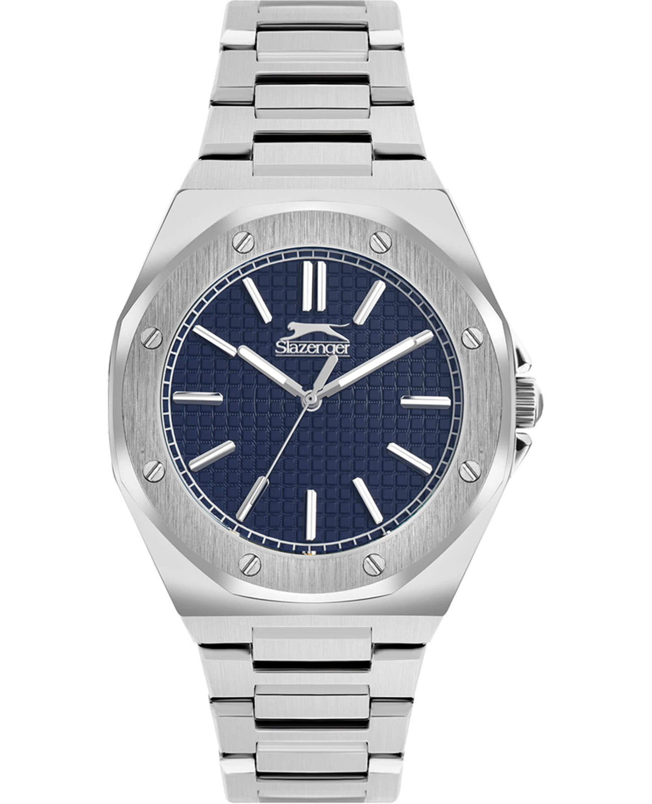 Мужские кварцевые часы Slazenger SL.09.2305.1.05 — это стильный и надёжный аксессуар, сочетающий современный дизайн и прочность. Корпус и браслет выполнены из суперметалла, защищён минеральным стекломМинеральное стеклоМинеральное стекло представляет собой искусственно выращенный минерал кварца. Такое стекло отличается особой устойчивостью к повреждениям и царапинам. Уступает по некоторым качествам сапфировому стеклу.. Циферблат синего цвета оформлен в классическом стиле, стрелки оснащены люминесцентным покрытиемЛюминесцентное покрытиеПозволяет считывать показания времени в темноте. Производители наносят на стрелки, часовые индексы, безель или поверхность циферблата светонакопительный состав, дающий холодное свечение., обеспечивающим хорошую читаемость в темноте. Заводная головка снабжена защитой, а задняя крышка — завинчивающаяся, что повышает надёжность конструкции. Браслет из суперметалла фиксируется на раскладной застёжкеРаскладная застёжкаТакой тип застёжки используется только на браслетах из металла. Она никогда не раскрывается полностью, происходит разделение на 2 и более частей. Раскладывающая застёжка снизит вероятность потери часов к минимуму., обеспечивая удобство и безопасность ношения. Водонепроницаемость 50 м позволяет использовать часы в повседневных условиях, защищая от случайных брызг и капель дождя. Модель подчёркивает индивидуальность владельца и идеально подходит как для повседневного, так и для делового образа.