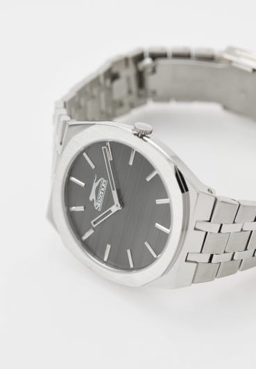 Мужские кварцевые часы Slazenger SL.09.2310.1.03 — это элегантный и стильный аксессуар, идеально дополняющий любой образ. Корпус и браслет выполнены из суперметалла, защищён минеральным стекломМинеральное стеклоМинеральное стекло представляет собой искусственно выращенный минерал кварца. Такое стекло отличается особой устойчивостью к повреждениям и царапинам. Уступает по некоторым качествам сапфировому стеклу.. Циферблат чёрного цвета оформлен в классическом стиле. Браслет из суперметалла фиксируется на раскладной застёжкеРаскладная застёжкаТакой тип застёжки используется только на браслетах из металла. Она никогда не раскрывается полностью, происходит разделение на 2 и более частей. Раскладывающая застёжка снизит вероятность потери часов к минимуму., обеспечивая удобство и надёжность ношения. Водонепроницаемость 50 м позволяет использовать часы в повседневных условиях, защищая от случайных брызг и капель дождя. Модель сочетает в себе лёгкость, прочность и изысканный внешний вид.
