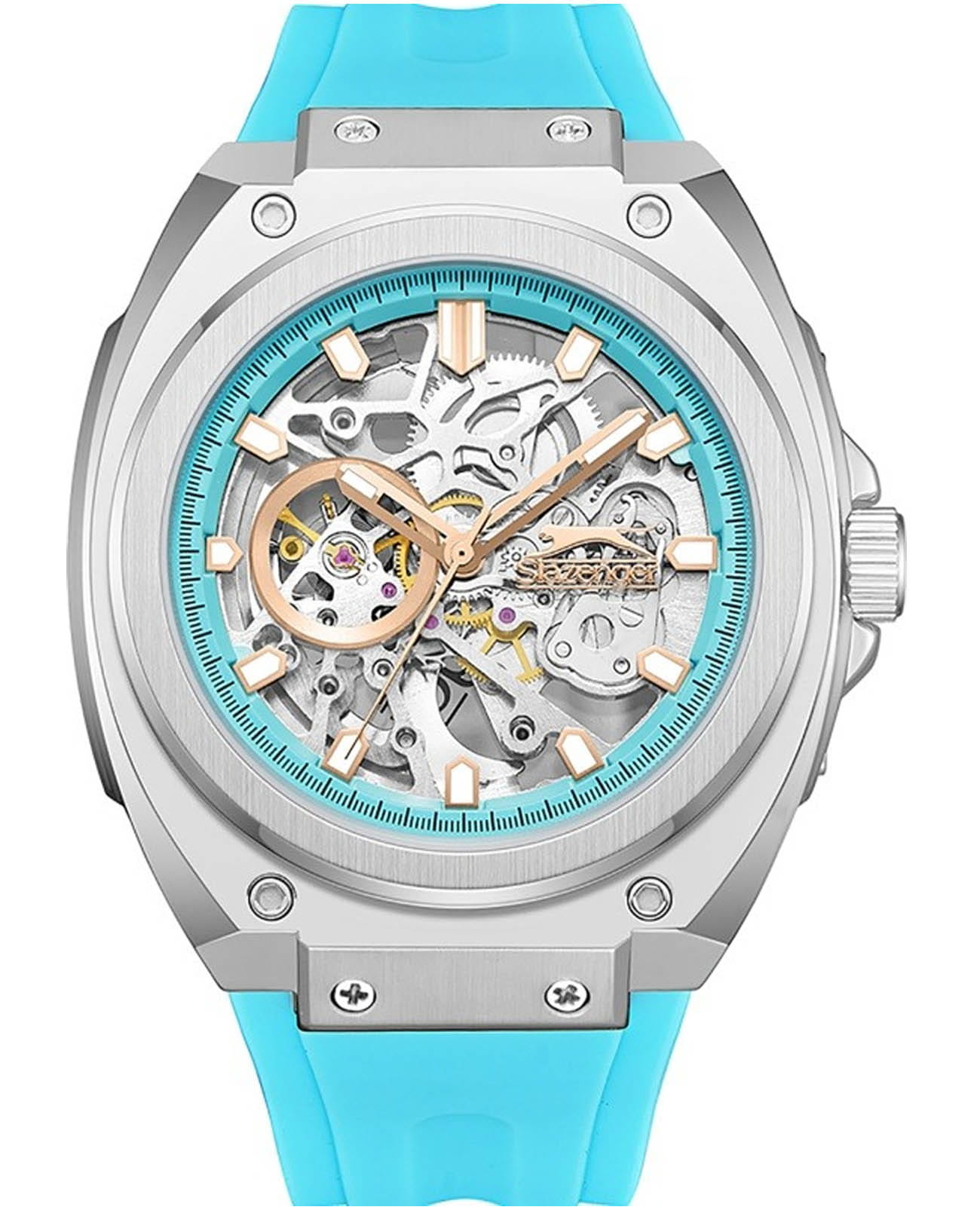 Мужские часы Slazenger SL.09.2321.1.06 — это выразительный и функциональный аксессуар, сочетающий стиль, прочность и насыщенную комплектацию. Часы оснащены механическим механизмом с автоподзаводом, что обеспечивает точность хода и удобство использования без необходимости ручного завода. Корпус выполнен из суперметалла, а циферблат скелетонизирован и оформлен в серебристых тонах, что позволяет наблюдать за работой механизма. Минеральное стеклоМинеральное стеклоМинеральное стекло представляет собой искусственно выращенный минерал кварца. Такое стекло отличается особой устойчивостью к повреждениям и царапинам. Уступает по некоторым качествам сапфировому стеклу. устойчивое к появлению царапин, обладающее высокой прозрачностью. Изысканный ремешок из силикона, что обеспечивает комфорт при ношении. Стрелки и метки оснащены люминесцентным покрытиемЛюминесцентное покрытиеПозволяет считывать показания времени в темноте. Производители наносят на стрелки, часовые индексы, безель или поверхность циферблата светонакопительный состав, дающий холодное свечение., обеспечивающим хорошую читаемость в темноте. Водонепроницаемость 50 м позволяет использовать часы в повседневных условиях, защищая от случайных брызг и капель дождя. Модель подчёркивает индивидуальность владельца и идеально подходит как для повседневного, так и для делового образа.