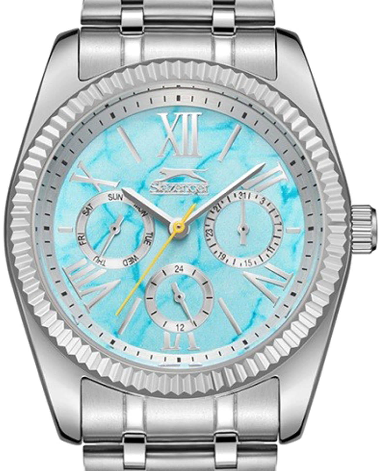 Женские кварцевые часы Slazenger SL.09.2343.4.01 – это сочетание элегантности, современного стиля и надёжности. Изящный корпус из суперметалла серебристого цвета, диаметром 36 мм и толщиной 10.5 мм, подчёркивает утончённость модели и делает их идеальным аксессуаром для любой ситуации – будь то деловая встреча, романтический вечер или повседневные выходы. Циферблат надёжно защищён минеральным стекломМинеральное стеклоМинеральное стекло представляет собой искусственно выращенный минерал кварца. Такое стекло отличается особой устойчивостью к повреждениям и царапинам. Уступает по некоторым качествам сапфировому стеклу., которое устойчиво к механическим повреждениям и сохраняет кристальную прозрачность. Рифленый неподвижный безельБезельВнешний ободок, закрепляющий стекло. В спортивных часах так называется поворотное кольцо с делениями на циферблате, выполняет роль таймера – замеряет отрезки времени на шкале. Неподвижный безель – элемент декора. Однонаправленно вращающийся безель на дайверских часах позволяет фиксировать моменты погружения и выныривания на поверхность.. Браслет из суперметалла удобно облегает запястье и фиксируется с помощью раскладной застёжкиРаскладная застёжкаТакой тип застёжки используется только на браслетах из металла. Она никогда не раскрывается полностью, происходит разделение на 2 и более частей. Раскладывающая застёжка снизит вероятность потери часов к минимуму., обеспечивая надёжность и комфорт в повседневном ношении. Утончённый стиль, внимание к деталям и практичность делают эту модель идеальным выбором для современных женщин, ценящих эстетику и функциональность. Вынесенный циферблат с 24-х часовым указателем времени. Водозащита до 30 метров позволит защитить корпус от случайных брызг или капель дождя.