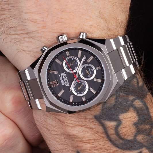 Мужские кварцевые часы Slazenger SL.09.2345.2.01 – идеальное сочетание классического дизайна и современных технологий, созданное для уверенных в себе мужчин. Корпус выполнен из суперметалла серебристого цвета, диаметром 43 мм и толщиной 12 мм, подчёркивает надежность модели и делает их идеальным аксессуаром для любой ситуации – будь то деловая встреча или повседневные выходы. Циферблат надёжно защищён минеральным стекломМинеральное стеклоМинеральное стекло представляет собой искусственно выращенный минерал кварца. Такое стекло отличается особой устойчивостью к повреждениям и царапинам. Уступает по некоторым качествам сапфировому стеклу., которое устойчиво к механическим повреждениям и сохраняет кристальную прозрачность. Браслет из суперметалла удобно облегает запястье и фиксируется с помощью раскладной застёжкиРаскладная застёжкаТакой тип застёжки используется только на браслетах из металла. Она никогда не раскрывается полностью, происходит разделение на 2 и более частей. Раскладывающая застёжка снизит вероятность потери часов к минимуму., обеспечивая надёжность и комфорт в повседневном ношении. Стрелки и метки покрыты люминесцентным покрытиемЛюминесцентное покрытиеПозволяет считывать показания времени в темноте. Производители наносят на стрелки, часовые индексы, безель или поверхность циферблата светонакопительный состав, дающий холодное свечение., обеспечивающим отличную читаемость в темноте. Эти часы станут не просто аксессуаром, а надежным спутником в любой ситуации, подчеркивая ваш безупречный вкус и деловой стиль. Окошко даты находится в положении между 4 и 5 часов. Вынесенный циферблат с 24-х часовым указателем времени. Водозащита до 50 метров позволит защитить корпус от случайных брызг или капель дождя. Функция GMTGMTОтображение времени второго часового пояса.Такая функция особенно актуальна для путешественников и бизнесменов,которые общаются с людьми из разных стран,теперь вы всегда будете знать,какой час у вашего партнёра или близкого человека. поможет отслеживать время второго часового поясаВторой часовой поясФункция, позволяющая отображать время двух часовых поясов одновременно..