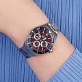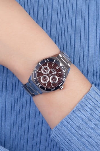 Женские кварцевые часы Slazenger SL.09.2371.2.06 – это сочетание элегантности, современного стиля и надёжности. Изящный корпус из суперметалла серебристого цвета, диаметром 38.5 мм и толщиной 11 мм, подчёркивает утончённость модели и делает их идеальным аксессуаром для любой ситуации – будь то деловая встреча, романтический вечер или повседневные выходы. Циферблат надёжно защищён минеральным стекломМинеральное стеклоМинеральное стекло представляет собой искусственно выращенный минерал кварца. Такое стекло отличается особой устойчивостью к повреждениям и царапинам. Уступает по некоторым качествам сапфировому стеклу., которое устойчиво к механическим повреждениям и сохраняет кристальную прозрачность. БезельБезельВнешний ободок, закрепляющий стекло. В спортивных часах так называется поворотное кольцо с делениями на циферблате, выполняет роль таймера – замеряет отрезки времени на шкале. Неподвижный безель – элемент декора. Однонаправленно вращающийся безель на дайверских часах позволяет фиксировать моменты погружения и выныривания на поверхность. с IP-покрытиемIP-покрытиеМетод ионного напыления. Демонстрирует повышенную устойчивость к истиранию, окислению и химическим веществам. Под воздействием высокого давления и температуры около 1500°C молекулы металла надёжно соединяются с частицами корпуса часов. черного цвета. Браслет из суперметалла удобно облегает запястье и фиксируется с помощью раскладной застёжкиРаскладная застёжкаТакой тип застёжки используется только на браслетах из металла. Она никогда не раскрывается полностью, происходит разделение на 2 и более частей. Раскладывающая застёжка снизит вероятность потери часов к минимуму., обеспечивая надёжность и комфорт в повседневном ношении. Утончённый стиль, внимание к деталям и практичность делают эту модель идеальным выбором для современных женщин, ценящих эстетику и функциональность. Стрелки и метки покрыты люминесцентным покрытиемЛюминесцентное покрытиеПозволяет считывать показания времени в темноте. Производители наносят на стрелки, часовые индексы, безель или поверхность циферблата светонакопительный состав, дающий холодное свечение., обеспечивающим отличную читаемость в темноте. Вынесенный циферблат с 24-х часовым указателем времени украшен фианитами. Водозащита до 30 метров позволит защитить корпус от случайных брызг или капель дождя.