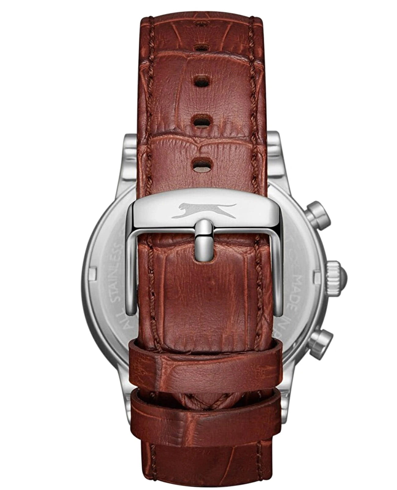 Мужские кварцевые часы Slazenger — это выразительный и функциональный аксессуар. Корпус диаметром 43 мм и толщиной 12 мм выполнен из нержавеющей стали 316L. Циферблат зелёного цвета оформлен индексами и стрелками. Циферблат защищён минеральным стекломМинеральное стеклоМинеральное стекло представляет собой искусственно выращенный минерал кварца. Такое стекло отличается особой устойчивостью к повреждениям и царапинам. Уступает по некоторым качествам сапфировому стеклу.. Механизм — кварцевый. Часы оснащены индикацией дня недели, даты, 12/24-часового формата времени и функцией второго часового пояса (GMT)Второй часовой поясФункция, позволяющая отображать время двух часовых поясов одновременно.. Окошко даты расположено между 4 и 5 часами. Стрелки с люминесцентным покрытиемЛюминесцентное покрытиеПозволяет считывать показания времени в темноте. Производители наносят на стрелки, часовые индексы, безель или поверхность циферблата светонакопительный состав, дающий холодное свечение., обеспечивающим хорошую читаемость в темноте. Часы оснащены кожаным ремешком со стандартной застёжкой. Водонепроницаемость 100 м позволяет использовать часы для плавания и повседневного ношения. Гарантия — 12 месяцев. Идеальный выбор для тех, кто ценит стиль, функциональность и качество.