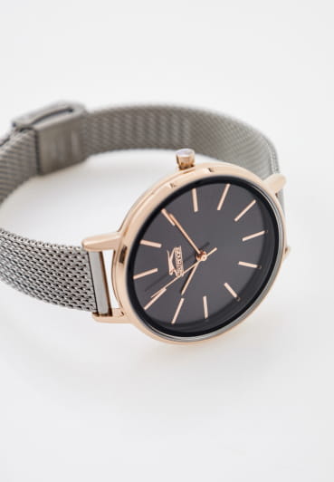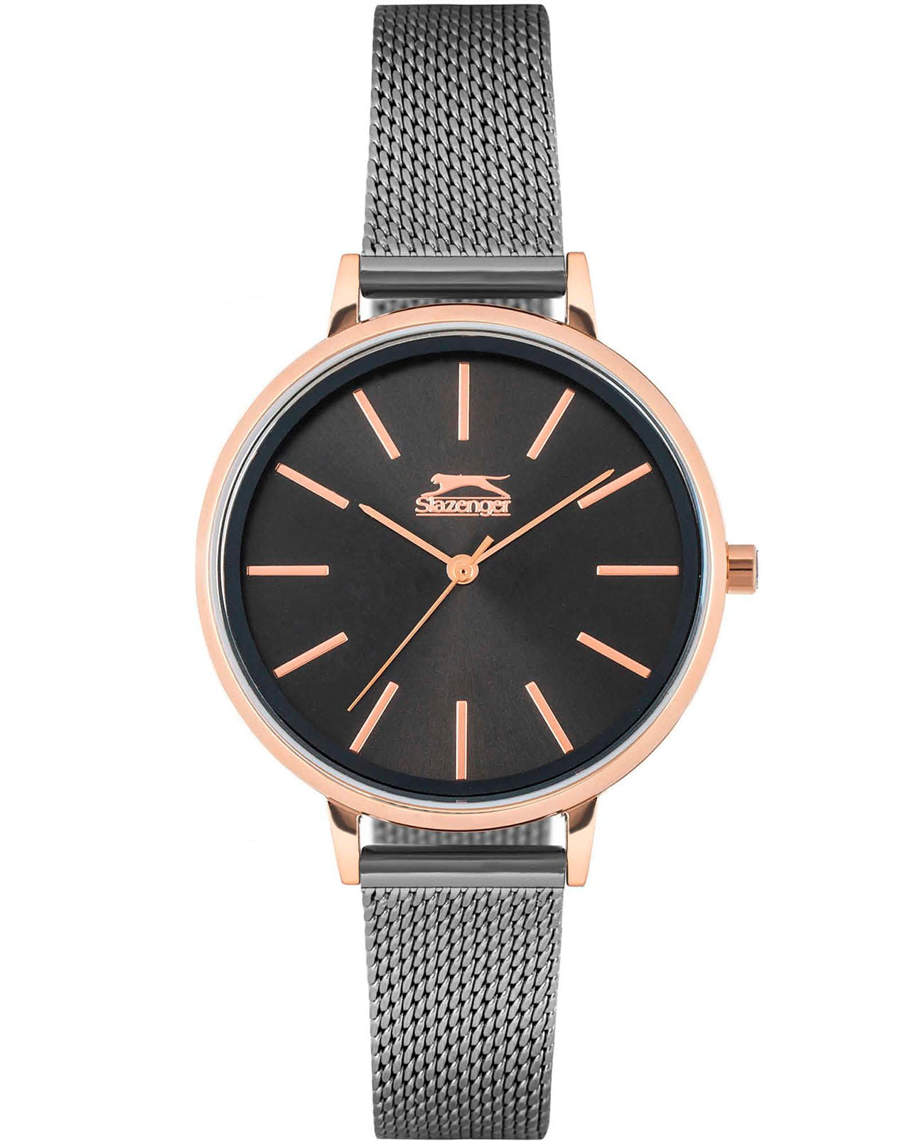 Женские кварцевые часы Slazenger — это элегантный аксессуар с браслетом миланского плетения. Корпус диаметром 38 мм и толщиной 9 мм выполнен из суперметалла с IP-покрытиемIP-покрытиеМетод ионного напыления. Демонстрирует повышенную устойчивость к истиранию, окислению и химическим веществам. Под воздействием высокого давления и температуры около 1500°C молекулы металла надёжно соединяются с частицами корпуса часов.. Циферблат чёрного цвета оформлен индексами и стрелками. Циферблат защищён минеральным стекломМинеральное стеклоМинеральное стекло представляет собой искусственно выращенный минерал кварца. Такое стекло отличается особой устойчивостью к повреждениям и царапинам. Уступает по некоторым качествам сапфировому стеклу.. Механизм — кварцевый калибр Miyota 2035. Часы оснащены браслетом из суперметалла миланского плетения с раскладной застёжкойРаскладная застёжкаТакой тип застёжки используется только на браслетах из металла. Она никогда не раскрывается полностью, происходит разделение на 2 и более частей. Раскладывающая застёжка снизит вероятность потери часов к минимуму.. Водонепроницаемость 30 м позволяет использовать часы в повседневных условиях. Идеальный выбор для тех, кто ценит стиль и качество.