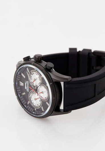 Мужские кварцевые часы Slazenger — это выразительный и функциональный аксессуар. Корпус диаметром 46 мм и толщиной 12 мм выполнен из суперметалла с IP-покрытиемIP-покрытиеМетод ионного напыления. Демонстрирует повышенную устойчивость к истиранию, окислению и химическим веществам. Под воздействием высокого давления и температуры около 1500°C молекулы металла надёжно соединяются с частицами корпуса часов.. Циферблат чёрного цвета оформлен индексами, стрелками и тремя вынесенными субциферблатами: для отображения дня недели, даты и 24-часового формата времени. Стрелки с люминесцентным покрытиемЛюминесцентное покрытиеПозволяет считывать показания времени в темноте. Производители наносят на стрелки, часовые индексы, безель или поверхность циферблата светонакопительный состав, дающий холодное свечение., обеспечивающим читаемость в темноте. Циферблат защищён минеральным стекломМинеральное стеклоМинеральное стекло представляет собой искусственно выращенный минерал кварца. Такое стекло отличается особой устойчивостью к повреждениям и царапинам. Уступает по некоторым качествам сапфировому стеклу.. Часы оснащены силиконовым ремешком на классической пряжке. Водонепроницаемость 30 м позволяет использовать часы в повседневных условиях. Идеальный выбор для тех, кто ценит стиль и качество.