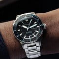 Мужские итальянские часы Spinnaker Hass SP-5099-22 с надёжным автоматическим механизмом. Сапфировое стеклоСапфировое стеклоПрочный и надёжный материал из кристалла сапфира синтетического происхождения, характеризующийся особой твёрдостью и устойчивостью к царапинам и повреждениям. с антибликовым покрытиемАнтибликовое покрытиеСлой оксида металла в 0,13-0,3 микрон, благодаря которому стекло часов не бликует и не отражает свет. Антибликовое покрытие уменьшает отражение света в 10 раз, обеспечивая отличную читаемость показателей циферблата., устойчивое к появлению царапин и обладающее высокой прозрачностью. Класс водозащиты: 300 метров, позволит плавать, нырять и заниматься другими водными видами спорта. Корпус часов изготовлен из нержавеющей стали с поворотным безелемБезельВнешний ободок, закрепляющий стекло. В спортивных часах так называется поворотное кольцо с делениями на циферблате, выполняет роль таймера – замеряет отрезки времени на шкале. Неподвижный безель – элемент декора. Однонаправленно вращающийся безель на дайверских часах позволяет фиксировать моменты погружения и выныривания на поверхность. с IP-покрытиемIP-покрытиеМетод ионного напыления. Демонстрирует повышенную устойчивость к истиранию, окислению и химическим веществам. Под воздействием высокого давления и температуры около 1500°C молекулы металла надёжно соединяются с частицами корпуса часов.. Браслет выполнен из нержавеющей стали на раскладной застёжкеРаскладная застёжкаТакой тип застёжки используется только на браслетах из металла. Она никогда не раскрывается полностью, происходит разделение на 2 и более частей. Раскладывающая застёжка снизит вероятность потери часов к минимуму.. Стрелки и метки с люминесцентным покрытиемЛюминесцентное покрытиеПозволяет считывать показания времени в темноте. Производители наносят на стрелки, часовые индексы, безель или поверхность циферблата светонакопительный состав, дающий холодное свечение.. Окошко дня недели и даты находится в положении 3 часа.