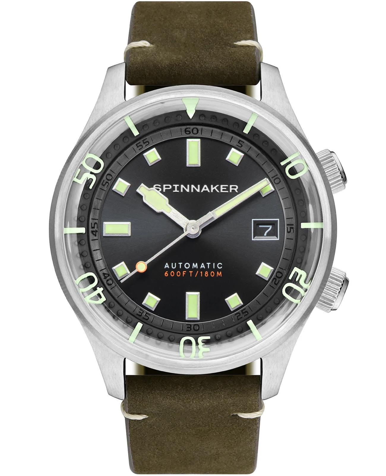 Мужские итальянские механические часы с автоподзаводом Spinnaker Bradner SP-5062-02, механический механизм (автоматический калибр) с высокой точностью. Сапфировое стеклоСапфировое стеклоПрочный и надёжный материал из кристалла сапфира синтетического происхождения, характеризующийся особой твёрдостью и устойчивостью к царапинам и повреждениям. устойчивое к появлению царапин, обладающее высокой прозрачностью. Класс водозащиты: 180 метров, позволит плавать, нырять и заниматься другими водными видами спорта. Корпус часов изготовлен из стали. Кожаный ремешок на стандартной застёжке. Окошко даты находится в положении 3 часа. Стрелки и метки с люминесцентным покрытиемЛюминесцентное покрытиеПозволяет считывать показания времени в темноте. Производители наносят на стрелки, часовые индексы, безель или поверхность циферблата светонакопительный состав, дающий холодное свечение..