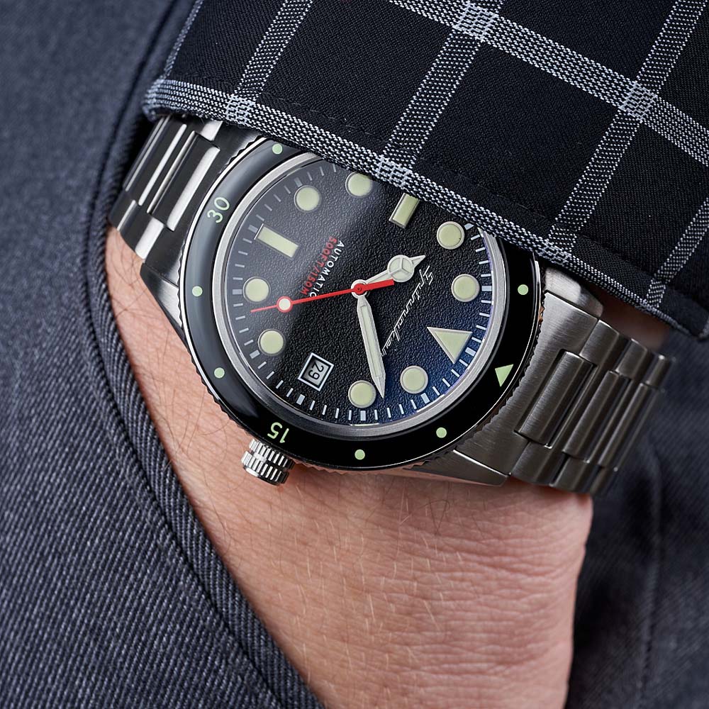 Мужские итальянские часы Spinnaker Dumas SP-5075-11, механический механизм (автоматический калибр) с высокой точностью. Циферблат с люминесцентным покрытиемЛюминесцентное покрытиеПозволяет считывать показания времени в темноте. Производители наносят на стрелки, часовые индексы, безель или поверхность циферблата светонакопительный состав, дающий холодное свечение. стрелок и меток, дополнен сапфировым стекломСапфировое стеклоПрочный и надёжный материал из кристалла сапфира синтетического происхождения, характеризующийся особой твёрдостью и устойчивостью к царапинам и повреждениям., устойчивым к появлению царапин и обладающее высокой прозрачностью. Класс водозащиты: 300 метров, позволит плавать, нырять и заниматься другими водными видами спорта. Корпус часов изготовлен из стали.
