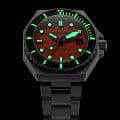 Мужские итальянские часы Spinnaker Dumas SP-5081-BB, механический механизм (автоматический калибр) с высокой точностью. Циферблат с люминесцентным покрытиемЛюминесцентное покрытиеПозволяет считывать показания времени в темноте. Производители наносят на стрелки, часовые индексы, безель или поверхность циферблата светонакопительный состав, дающий холодное свечение. стрелок и меток, дополнен сапфировым стекломСапфировое стеклоПрочный и надёжный материал из кристалла сапфира синтетического происхождения, характеризующийся особой твёрдостью и устойчивостью к царапинам и повреждениям., устойчивым к появлению царапин и обладающее высокой прозрачностью. БезельБезельВнешний ободок, закрепляющий стекло. В спортивных часах так называется поворотное кольцо с делениями на циферблате, выполняет роль таймера – замеряет отрезки времени на шкале. Неподвижный безель – элемент декора. Однонаправленно вращающийся безель на дайверских часах позволяет фиксировать моменты погружения и выныривания на поверхность. с PVD-покрытиемPVDУльтратонкое покрытие наносится в технике вакуумного напыления, сочетает в себе нитрид титана особой прочности со слоем золота или оксида хрома. Несёт в себе декоративную или защитную функцию.. Класс водозащиты: 300 метров, позволит плавать, нырять и заниматься другими водными видами спорта. Корпус часов изготовлен из стали.