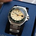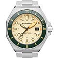 Мужские итальянские механические часы с автоподзаводом Spinnaker Dumas SP-5081-CC, механический механизм (автоматический калибр) с высокой точностью. Циферблат с люминесцентным покрытиемЛюминесцентное покрытиеПозволяет считывать показания времени в темноте. Производители наносят на стрелки, часовые индексы, безель или поверхность циферблата светонакопительный состав, дающий холодное свечение. стрелок, меток и безеляБезельВнешний ободок, закрепляющий стекло. В спортивных часах так называется поворотное кольцо с делениями на циферблате, выполняет роль таймера – замеряет отрезки времени на шкале. Неподвижный безель – элемент декора. Однонаправленно вращающийся безель на дайверских часах позволяет фиксировать моменты погружения и выныривания на поверхность. дополнен сапфировым стекломСапфировое стеклоПрочный и надёжный материал из кристалла сапфира синтетического происхождения, характеризующийся особой твёрдостью и устойчивостью к царапинам и повреждениям. с антибликовым покрытием, устойчивым к появлению царапин и обладающее высокой прозрачностью. Класс водозащиты: 300 метров (погружение с аквалангом). Корпус часов изготовлен из нержавеющей стали 316L. Благодаря обновленному безелюБезельВнешний ободок, закрепляющий стекло. В спортивных часах так называется поворотное кольцо с делениями на циферблате, выполняет роль таймера – замеряет отрезки времени на шкале. Неподвижный безель – элемент декора. Однонаправленно вращающийся безель на дайверских часах позволяет фиксировать моменты погружения и выныривания на поверхность. с IP-покрытиемIP-покрытиеМетод ионного напыления. Демонстрирует повышенную устойчивость к истиранию, окислению и химическим веществам. Под воздействием высокого давления и температуры около 1500°C молекулы металла надёжно соединяются с частицами корпуса часов. с более техническим изгибом, мастерство и точность изготовления часов Spinnaker Watches демонстрируются в безелеБезельВнешний ободок, закрепляющий стекло. В спортивных часах так называется поворотное кольцо с делениями на циферблате, выполняет роль таймера – замеряет отрезки времени на шкале. Неподвижный безель – элемент декора. Однонаправленно вращающийся безель на дайверских часах позволяет фиксировать моменты погружения и выныривания на поверхность. из закаленного стекла. Стальной браслет на раскладной застёжкеРаскладная застёжкаТакой тип застёжки используется только на браслетах из металла. Она никогда не раскрывается полностью, происходит разделение на 2 и более частей. Раскладывающая застёжка снизит вероятность потери часов к минимуму..