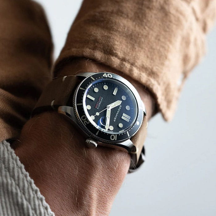 Мужские итальянские часы Spinnaker Bradner sp-5100-02, механический механизм (автоматический калибр) с высокой точностью. Циферблат с люминесцентным покрытиемЛюминесцентное покрытиеПозволяет считывать показания времени в темноте. Производители наносят на стрелки, часовые индексы, безель или поверхность циферблата светонакопительный состав, дающий холодное свечение. стрелок и меток, дополнен сапфировым стекломСапфировое стеклоПрочный и надёжный материал из кристалла сапфира синтетического происхождения, характеризующийся особой твёрдостью и устойчивостью к царапинам и повреждениям., устойчивым к появлению царапин и обладающее высокой прозрачностью. Класс водозащиты: 150 метров, позволит плавать, нырять и заниматься другими водными видами спорта. Корпус часов изготовлен из усовершенствованной стали 316L.