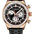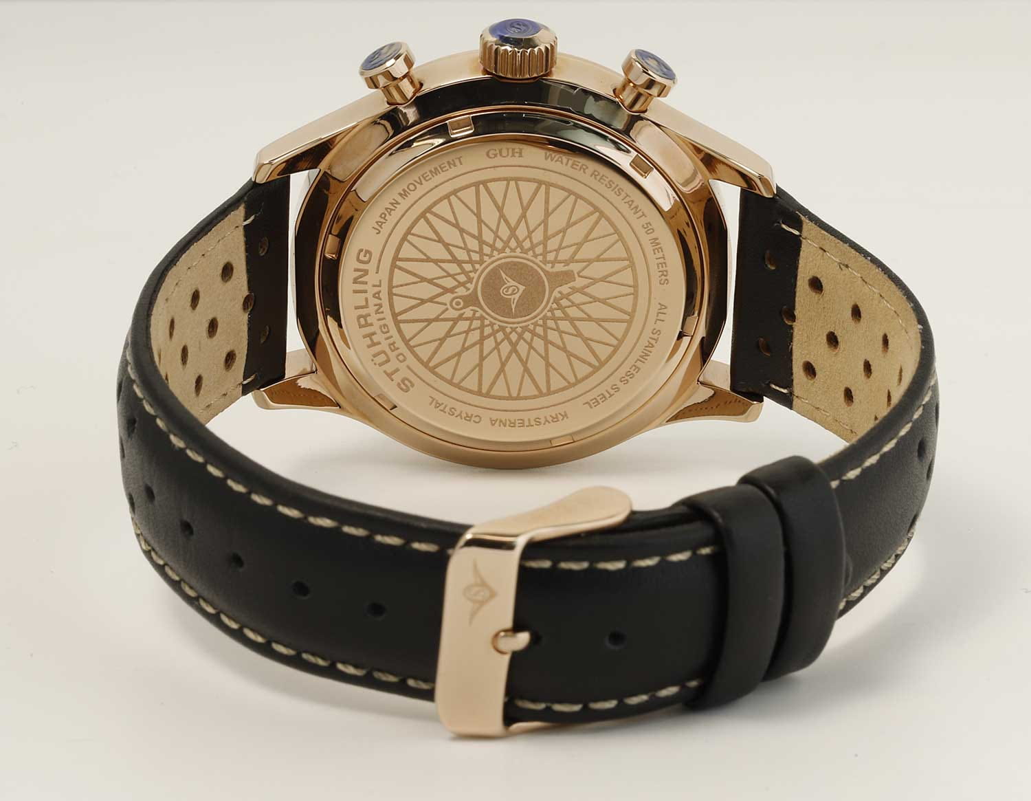 Stuhrling 934.03 — эффектные мужские часы в спортивно-классическом стиле, сочетающие энергичный характер и элегантное исполнение. Корпус с изысканным PVD-покрытиемPVDУльтратонкое покрытие наносится в технике вакуумного напыления, сочетает в себе нитрид титана особой прочности со слоем золота или оксида хрома. Несёт в себе декоративную или защитную функцию. цвета розового золота придаёт модели выразительность и статусный вид. Контрастный чёрный циферблат с белыми счётчиками хронографаХронографФункция позволяет измерять отрезки времени с особой точностью: часы, минуты, секунды. Верным признаком хронографа является наличие на циферблате 3 дополнительных окошек-счётчиков. и акцентами красного цвета создаёт динамичную композицию, а разметка тахиметра добавляет функциональности. Прочное стекло KrysternaKrysternaKrysterna — инновационное стекло для наручных часов. Благодаря уникальной структуре, Krysterna объединяет ключевые преимущества двух материалов: твердость сапфира, защищающую от царапин, и гибкость минерального стекла, обеспечивающую устойчивость к деформациям. Такая комбинация делает его идеальным решением для часов, подверженных экстремальным нагрузкам, сохраняя при этом оптическую прозрачность. защищает поверхность от царапин, сохраняя прозрачность и блеск. Перфорированный кожаный ремень со стандартной застежкой обеспечивает комфорт и спортивный характер образа. Stuhrling — выбор уверенного мужчины, для которого стиль, точность и мощная эстетика идут рука об руку.
