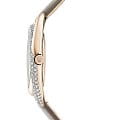 Женские швейцарские часы с кристаллами Swarowski Swarovski 5484382, кварцевый механизм с высокой точностью. Класс водозащиты: 50 метров, позволит защитить корпус от случайных брызг или капель дождя. Корпус часов изготовлен из стали, позолоченного цвета.