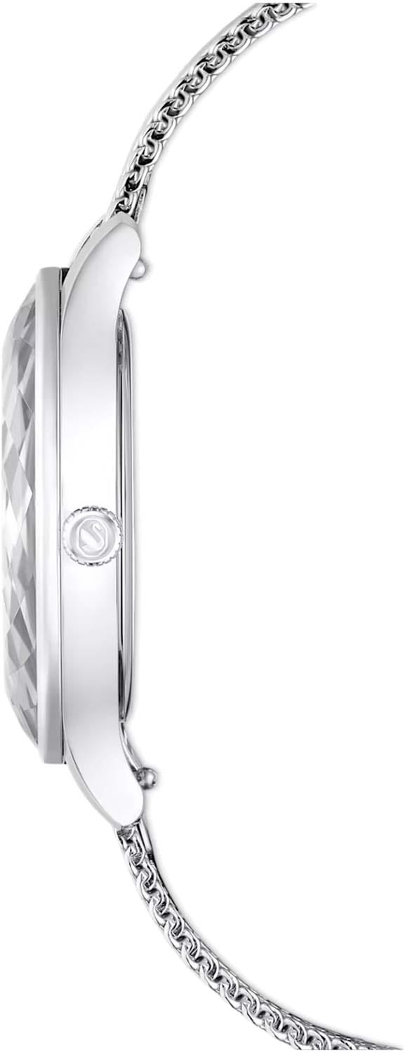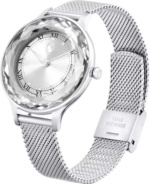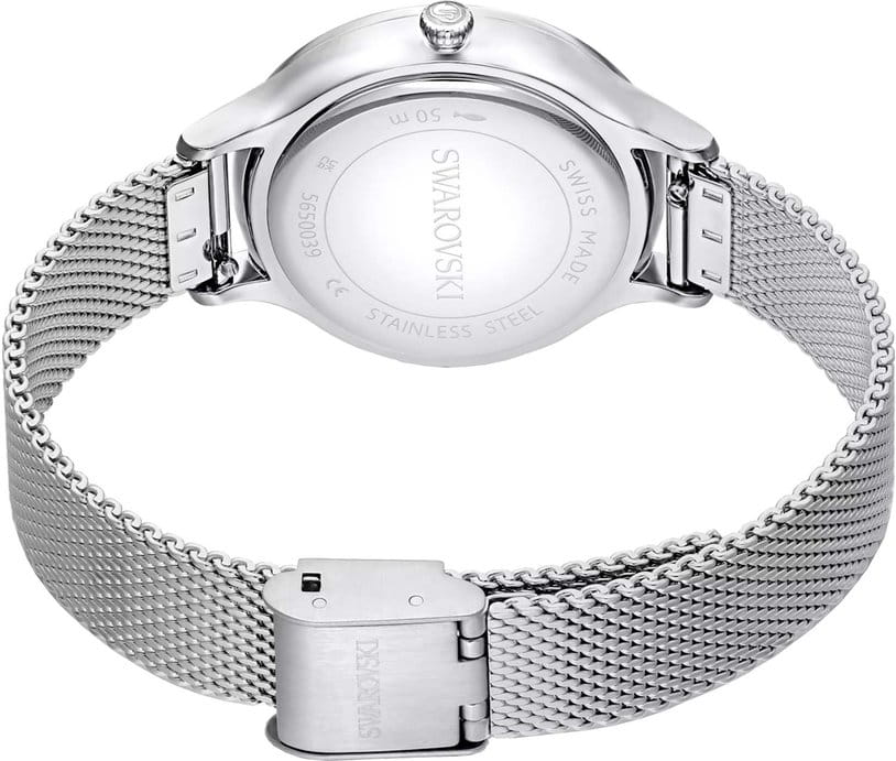Часы Swarovski 5650039 представляют собой изысканное воплощение швейцарского мастерства и современного дизайна. Эти кварцевые часы выполнены из нержавеющей стали серебристого цвета, что придает им утонченный и стильный вид. Серебристый циферблат выполнен по технологии Sunray (солнечные лучи) и украшен изображением лебедя Swarovski в положении 12 часов. Корпус диаметром 33 мм и браслет миланского плетения с раскладным замкомРаскладной замокДанный вариант застежки используется только на часах с металлическим браслетом. Отличительная особенность такого крепления в том, что длина браслета становится универсальной и вы можете самостоятельно отрегулировать нужный вам размер – застежка просто двигается по браслету часов. обеспечивают комфортное ношение и элегантный внешний вид. Сапфировое стеклоСапфировое стеклоПрочный и надёжный материал из кристалла сапфира синтетического происхождения, характеризующийся особой твёрдостью и устойчивостью к царапинам и повреждениям. защищает циферблат от царапин и повреждений, обеспечивая долговечность и надежность изделия. БезельБезельВнешний ободок, закрепляющий стекло. В спортивных часах так называется поворотное кольцо с делениями на циферблате, выполняет роль таймера – замеряет отрезки времени на шкале. Неподвижный безель – элемент декора. Однонаправленно вращающийся безель на дайверских часах позволяет фиксировать моменты погружения и выныривания на поверхность. также сделан из сапфирового стеклаСапфировое стеклоПрочный и надёжный материал из кристалла сапфира синтетического происхождения, характеризующийся особой твёрдостью и устойчивостью к царапинам и повреждениям.. Водозащита 50 WR позволяет не беспокоиться о случайных контактах с водой в повседневной жизни. Клиновидные стрелки в стиле Dauphine и рифленая заводная головка с логотипом Swarovski завершают образ, делая эти часы идеальным аксессуаром для тех, кто ценит качество и стиль в каждом элементе. Эти часы не только функциональны, но и являются настоящим произведением искусства, подчеркивающим ваш изысканный вкус.