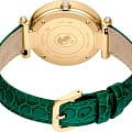Часы Swarovski 5656893 представляют собой идеальное сочетание роскоши и изысканности, которые подчеркнут вашу индивидуальность и стиль. Эти швейцарские часы оснащены надежным кварцевым механизмом, гарантирующим точность времени. Круглый корпус из нержавеющей стали с PVDPVDУльтратонкое покрытие наносится в технике вакуумного напыления, сочетает в себе нитрид титана особой прочности со слоем золота или оксида хрома. Несёт в себе декоративную или защитную функцию. покрытием оттенка желтого золота создает элегантный и утонченный образ. Под куполообразным минеральным стекломМинеральное стеклоМинеральное стекло представляет собой искусственно выращенный минерал кварца. Такое стекло отличается особой устойчивостью к повреждениям и царапинам. Уступает по некоторым качествам сапфировому стеклу. расположен серебристый циферблат, декорированный примерно тысячью сверкающих кристаллов Swarovski. Метки в виде римских и арабских цифр добавляют классический акцент, а граненая заводная головка украшена кристаллом круглой огранки. Ремешок из натуральной итальянской телячьей кожи зеленого цвета, с тиснением под кожу ящерицы, обеспечивает комфорт и стиль, а стандартная застежка гарантирует надежную фиксацию на запястье. Водозащита 50WR позволяет носить часы в различных условиях, защищая их от воздействия влаги. С диаметром корпуса 35 мм и длиной ремешка 16,5 см, эти часы идеально подходят для любого случая, создавая выразительный и эффектный образ.