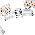 Часы Swarovski 5672937 воплощают в себе гармоничное сочетание современного дизайна и функциональности, идеально подходящее для тех, кто ценит стильные аксессуары. Эти швейцарские кварцевые часы с хронографомХронографФункция позволяет измерять отрезки времени с особой точностью: часы, минуты, секунды. Верным признаком хронографа является наличие на циферблате 3 дополнительных окошек-счётчиков. и секундомеромСекундомерСекундоме́р — прибор, способный измерять интервалы времени с точностью до долей секунды. обладают корпусом из стали, который эффектно дополняется белым циферблатом. Ограненный кристальный безельБезельВнешний ободок, закрепляющий стекло. В спортивных часах так называется поворотное кольцо с делениями на циферблате, выполняет роль таймера – замеряет отрезки времени на шкале. Неподвижный безель – элемент декора. Однонаправленно вращающийся безель на дайверских часах позволяет фиксировать моменты погружения и выныривания на поверхность. серебристого цвета с частичным золотистым PVDPVDУльтратонкое покрытие наносится в технике вакуумного напыления, сочетает в себе нитрид титана особой прочности со слоем золота или оксида хрома. Несёт в себе декоративную или защитную функцию. покрытием. Особое внимание привлекают кристаллы Swarovski, которые украшают как корпус, так и циферблат, придавая часам изысканный блеск и подчеркивая их роскошный вид. Минеральное стеклоМинеральное стеклоМинеральное стекло представляет собой искусственно выращенный минерал кварца. Такое стекло отличается особой устойчивостью к повреждениям и царапинам. Уступает по некоторым качествам сапфировому стеклу. надежно защищает циферблат от повреждений, а водозащита 50 WR делает эти часы надежным спутником в повседневной жизни, позволяя не беспокоиться о случайном попадании воды. Стальной золотистый браслет с чстичным PVDPVDУльтратонкое покрытие наносится в технике вакуумного напыления, сочетает в себе нитрид титана особой прочности со слоем золота или оксида хрома. Несёт в себе декоративную или защитную функцию. покрытием и застежкой «бабочка»Застёжка "бабочка"Такой вид застёжки дополняется предохранителями, помогающими избежать случайного раскрытия браслета. Обладают изящным исполнением. обеспечивает комфортное ношение и элегантный внешний вид. Диаметр корпуса составляет 37 мм, а длина браслета — 16,5 см, что делает их идеальным выбором для обладателей изысканного вкуса. На часовую, минутную стрелки нанесено люминесцентное покрытиеЛюминесцентное покрытиеПозволяет считывать показания времени в темноте. Производители наносят на стрелки, часовые индексы, безель или поверхность циферблата светонакопительный состав, дающий холодное свечение., которое светится в темноте, создавая необычное изображение. Эти часы станут не просто аксессуаром, а настоящим украшением, подчеркивающим индивидуальность и утонченность своей владелицы.