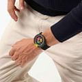 Женские наручные часы Swatch SWATCH NEON SEPPIA SB02B104 — это стильный и современный аксессуар-хронографХронографФункция позволяет измерять отрезки времени с особой точностью: часы, минуты, секунды. Верным признаком хронографа является наличие на циферблате 3 дополнительных окошек-счётчиков. для тех, кто ценит лёгкость и комфорт. Коллекционные часы по мотивам коллекционных часов Swatch SCUBA AQUACHRONO 90-х годов: SEPPIA (SBM102).  Корпус выполнен из пластика диаметром 47 мм и толщиной 14 мм, что обеспечивает долговечность и утончённый внешний вид. Циферблат защищён органическим стеклом, устойчивым к повреждениям. Модель оснащена кварцевым механизмом, обеспечивающим высокую точность хода. Черные часовая и минутная стрелки с люминесцентным покрытиемЛюминесцентное покрытиеПозволяет считывать показания времени в темноте. Производители наносят на стрелки, часовые индексы, безель или поверхность циферблата светонакопительный состав, дающий холодное свечение.. Силиконовый ремешок на стандартной застёжке гармонично дополняет корпус и обеспечивает комфортное ношение. ТахиметрТахиметрРазмеченная шкала, располагается на ободке или безеле часов. Тахиметр позволяет рассчитать скорость на определённом участке пути, расстояние измеряется в километрах или милях. по внешнему краю. Водозащита 30 метров делает часы практичными для повседневного использования. Эти часы подойдут для повседневного ношения и станут ярким акцентом в вашем наряде.