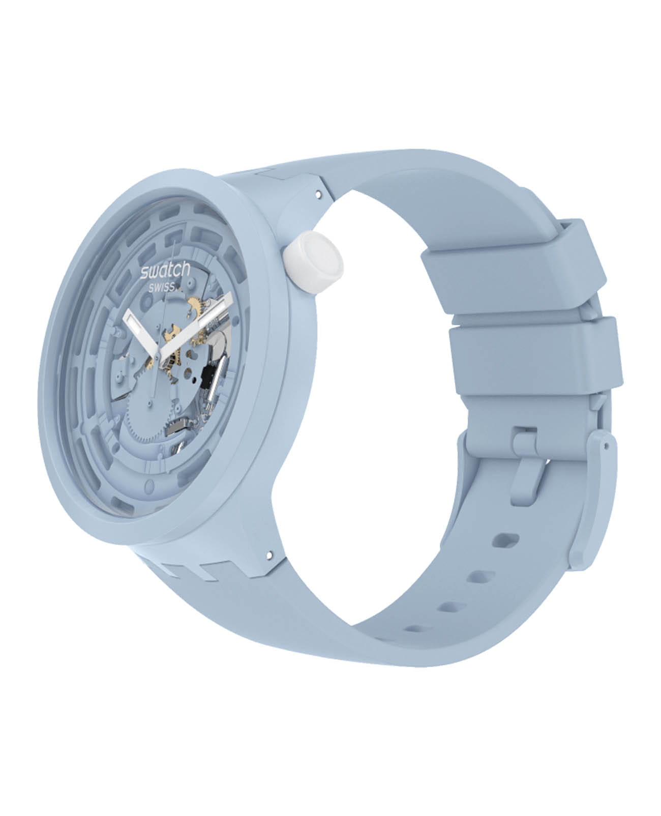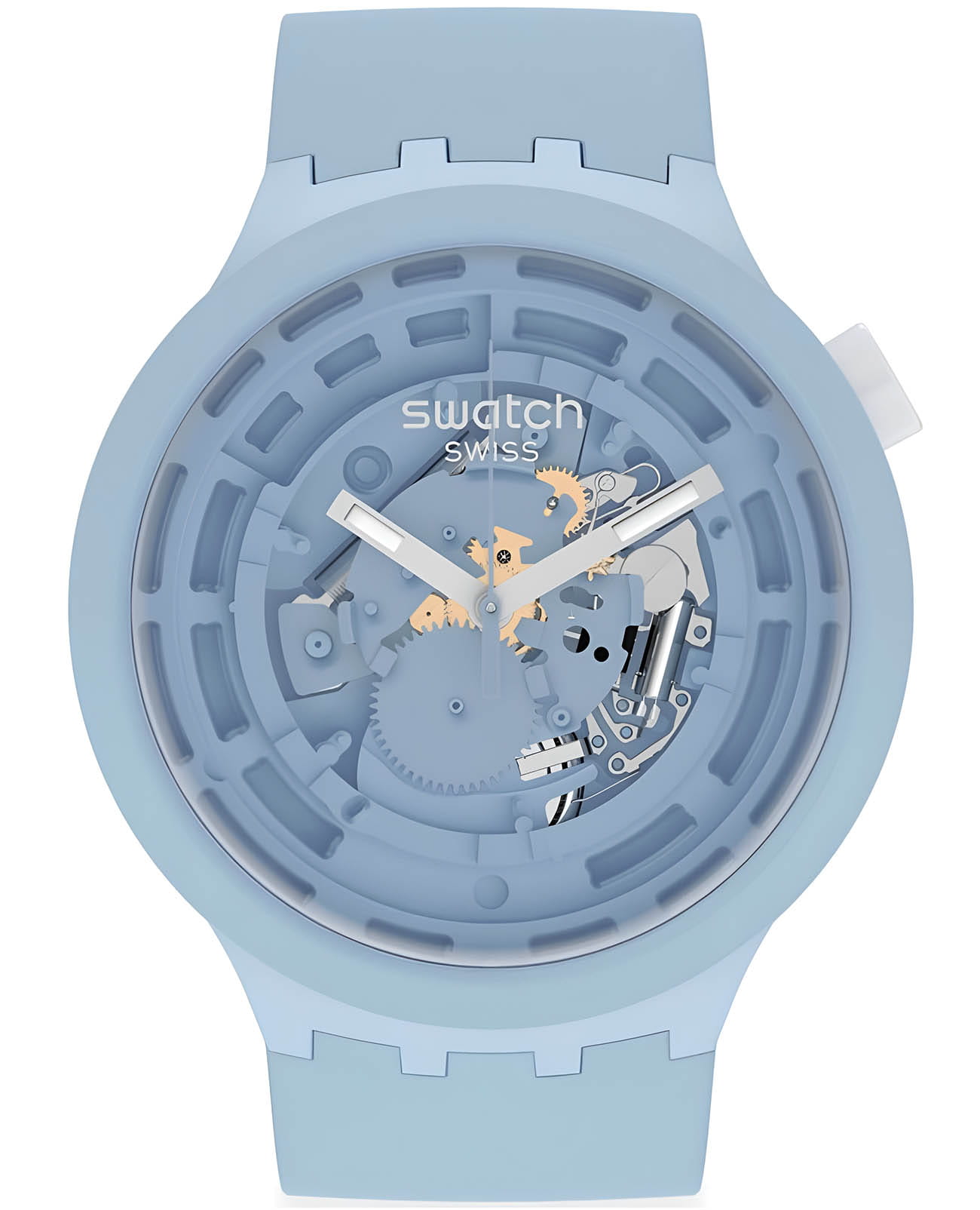 Часы Swatch SB03N100 — это стильный и современный аксессуар для тех, кто ценит лёгкость и комфорт. Часы идеально подойдут как для мужчин, так и для женщин. Прекрасный образец часов, выполненных полностью из материалов биологического происхождения: открытый механизм и биокерамикаБиокерамикаБиокерамика — это материал, который на две трети состоит из керамики, на одну треть — из биопластика. Он сочетает в себе лучшие качества обоих материалов и обладает прочностью и шелковистой на ощупь текстурой., которая создает ощущение шелковистости. Впечатляющий дизайн голубого цвета — инновация в своем лучшем проявлении. На часовую, минутную стрелки нанесено люминесцентное покрытиеЛюминесцентное покрытиеПозволяет считывать показания времени в темноте. Производители наносят на стрелки, часовые индексы, безель или поверхность циферблата светонакопительный состав, дающий холодное свечение., которое светится в темноте, создавая необычное изображение. Водозащита 30 метров делает часы практичными для повседневного использования. Эти часы подойдут для повседневного ношения и станут ярким акцентом в вашем наряде.