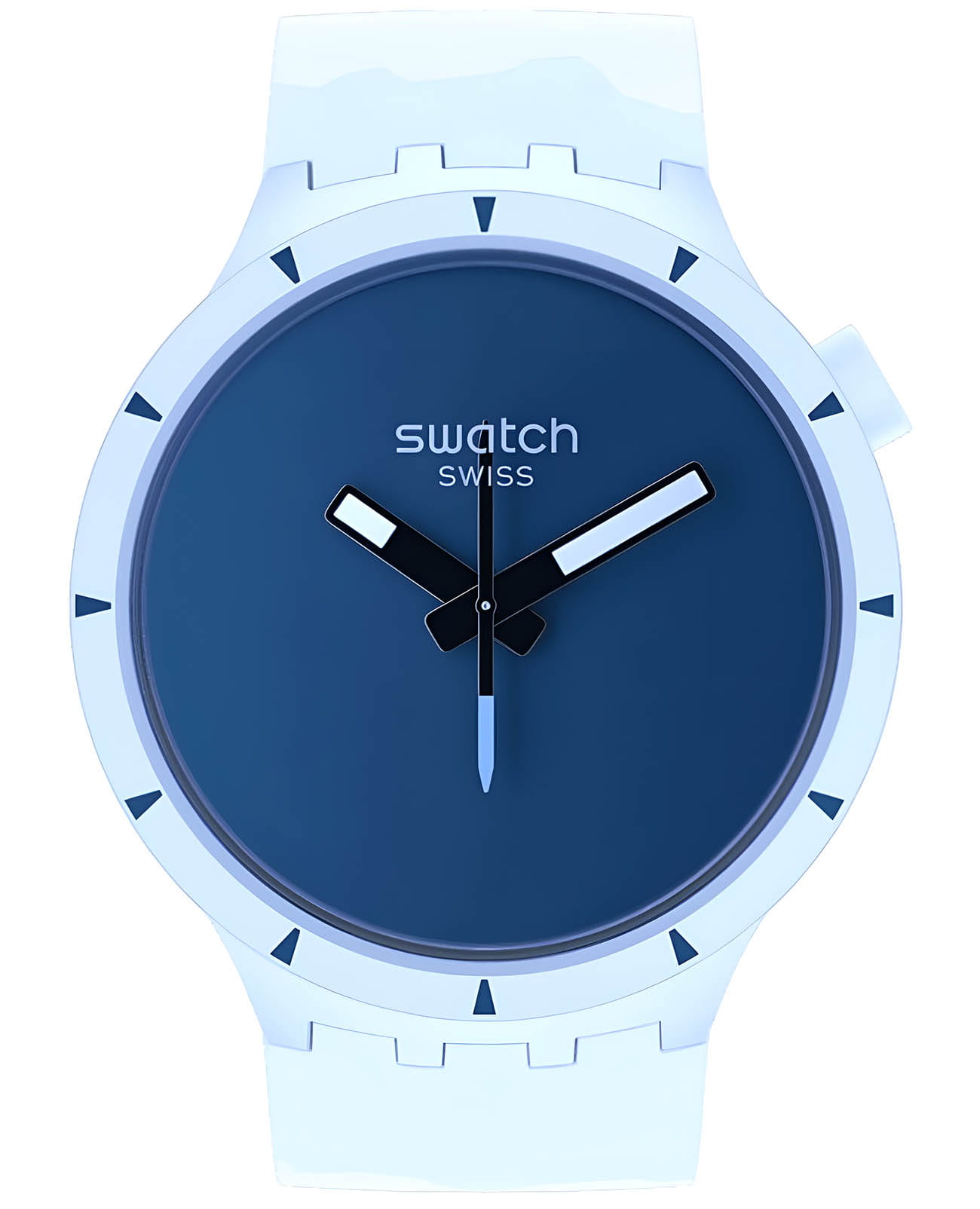 Часы Swatch SB03N102 — это стильный и современный аксессуар для тех, кто ценит лёгкость и комфорт. Часы идеально подойдут как для мужчин, так и для женщин. Корпус из биокерамикиБиокерамикаБиокерамика — это материал, который на две трети состоит из керамики, на одну треть — из биопластика. Он сочетает в себе лучшие качества обоих материалов и обладает прочностью и шелковистой на ощупь текстурой., а ремешок — из однотонного матово-синего силикона. Темно-синий циферблат подчеркивает белые акценты на темных стрелках. Секундная стрелка, прообразом которой стала стрелка компаса, усиливает дух приключений. На часовую и минутную стрелки нанесено люминесцентное покрытиеЛюминесцентное покрытиеПозволяет считывать показания времени в темноте. Производители наносят на стрелки, часовые индексы, безель или поверхность циферблата светонакопительный состав, дающий холодное свечение., которое светится в темноте, создавая необычное изображение. Водозащита 30 метров делает часы практичными для повседневного использования. Эти часы подойдут для повседневного ношения и станут ярким акцентом в вашем наряде.