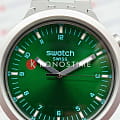 Часы Swatch SB07S101G — это стильный и современный аксессуар для тех, кто ценит лёгкость и комфорт. Часы идеально подойдут как для мужчин, так и для женщин. Эти большие часы из нержавеющей стали имеют циферблат зеленого цвета c радиальной полировкой, бирюзовым принтом и серыми светящимися в темноте стрелками благодаря люминесцентному покрытиюЛюминесцентное покрытиеПозволяет считывать показания времени в темноте. Производители наносят на стрелки, часовые индексы, безель или поверхность циферблата светонакопительный состав, дающий холодное свечение.. Дизайн часов дополняют регулируемый браслет с застёжкой «бабочка»Застёжка "бабочка"Такой вид застёжки дополняется предохранителями, помогающими избежать случайного раскрытия браслета. Обладают изящным исполнением. и корпус из нержавеющей стали с пескоструйной обработкой. Водозащита 30 метров делает часы практичными для повседневного использования. Эти часы подойдут для повседневного ношения и станут ярким акцентом в вашем наряде.