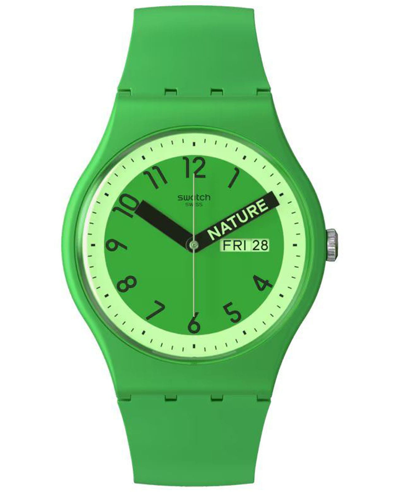 Часы Swatch SO29G704 — стильный и надежный аксессуар. Эти специальные часы Swatch Pride 2023 имеют циферблат с зеленым принтом и зеленое стекло из биоматериала в корпусе из биоматериала. Стрелки часов и минут черные, при этом стрелка минут указывает на значение цвета зеленого в флаге Pride: природа. Соответствующий ремешок этих зеленых часов включает две специальные петли, которые образуют радугу, когда они соединены. Ремешок силиконовый на классической застежке. Внутри часов установлен надежный кварцевый механизм, который обеспечивает точность хода. Эти часы водонепроницаемы до 30 метров, что позволяет не беспокоиться о случайных брызгах или дождевых каплях. Swatch SO29G704 — это идеальный выбор для тех, кто ценит сочетание стиля, комфорта и функциональности в одном аксессуаре.