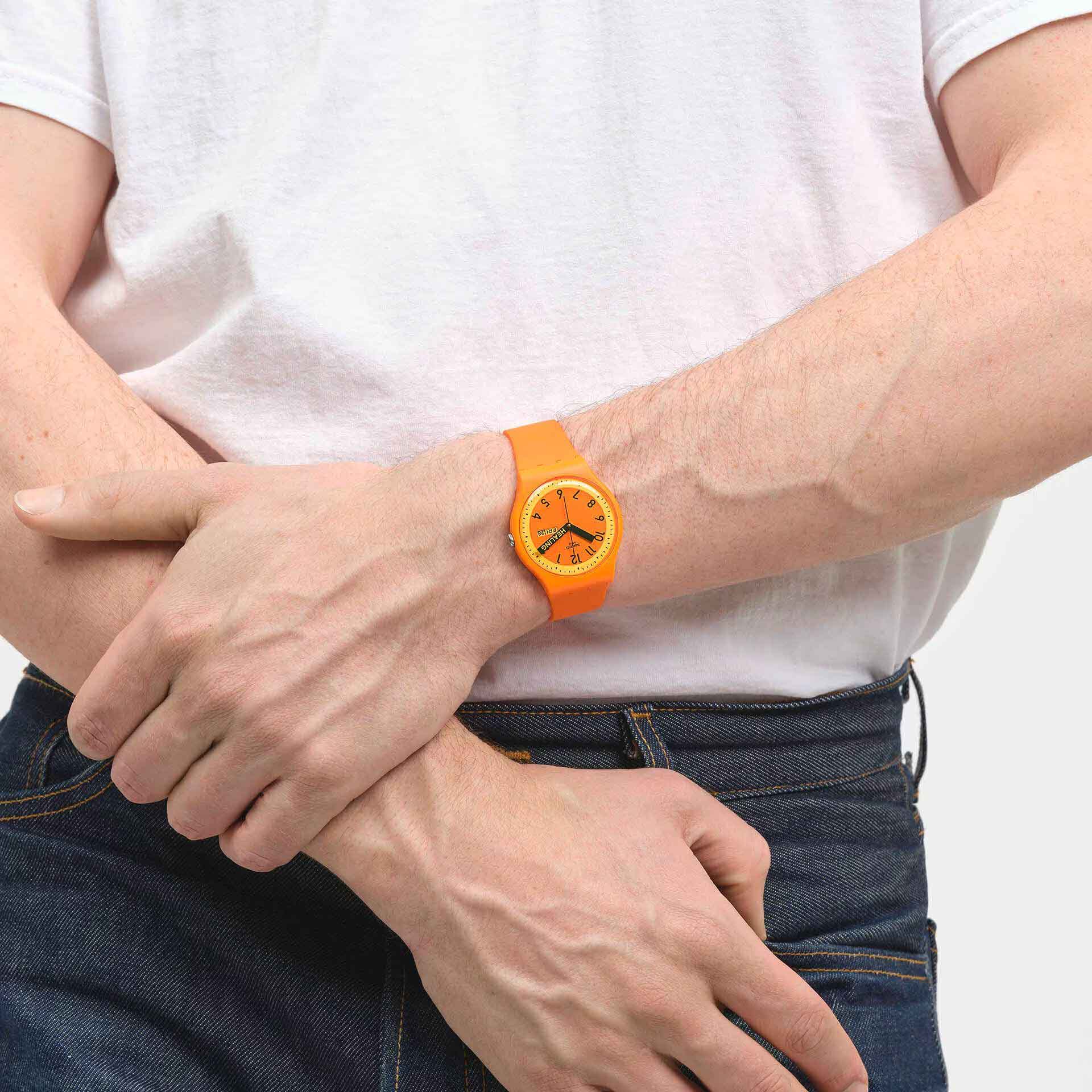 Часы Swatch SO29O700 —  стильный и надежный аксессуар. Эти специальные часы Swatch Pride 2023 имеют циферблат с оранжевым принтом и оранжевое стекло из биоматериала в корпусе из биоматериала. Стрелки часов и минут - черные, надпись на стрелке HEALING символизирует значение цвета — исцеление.  Соответствующий ремешок этих оранжевых часов включает две специальные петли, которые образуют радугу, когда они соединены. Ремешок силиконовый на классической застежке. Имеется окошко даты и дня недели в положении 3 часа. Внутри часов установлен надежный кварцевый механизм, который обеспечивает точность хода. Эти часы водонепроницаемы до 30 метров, что позволяет не беспокоиться о случайных брызгах или дождевых каплях. Swatch SO29O700 — это идеальный выбор для тех, кто ценит сочетание стиля, комфорта и функциональности в одном аксессуаре.