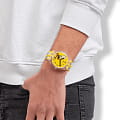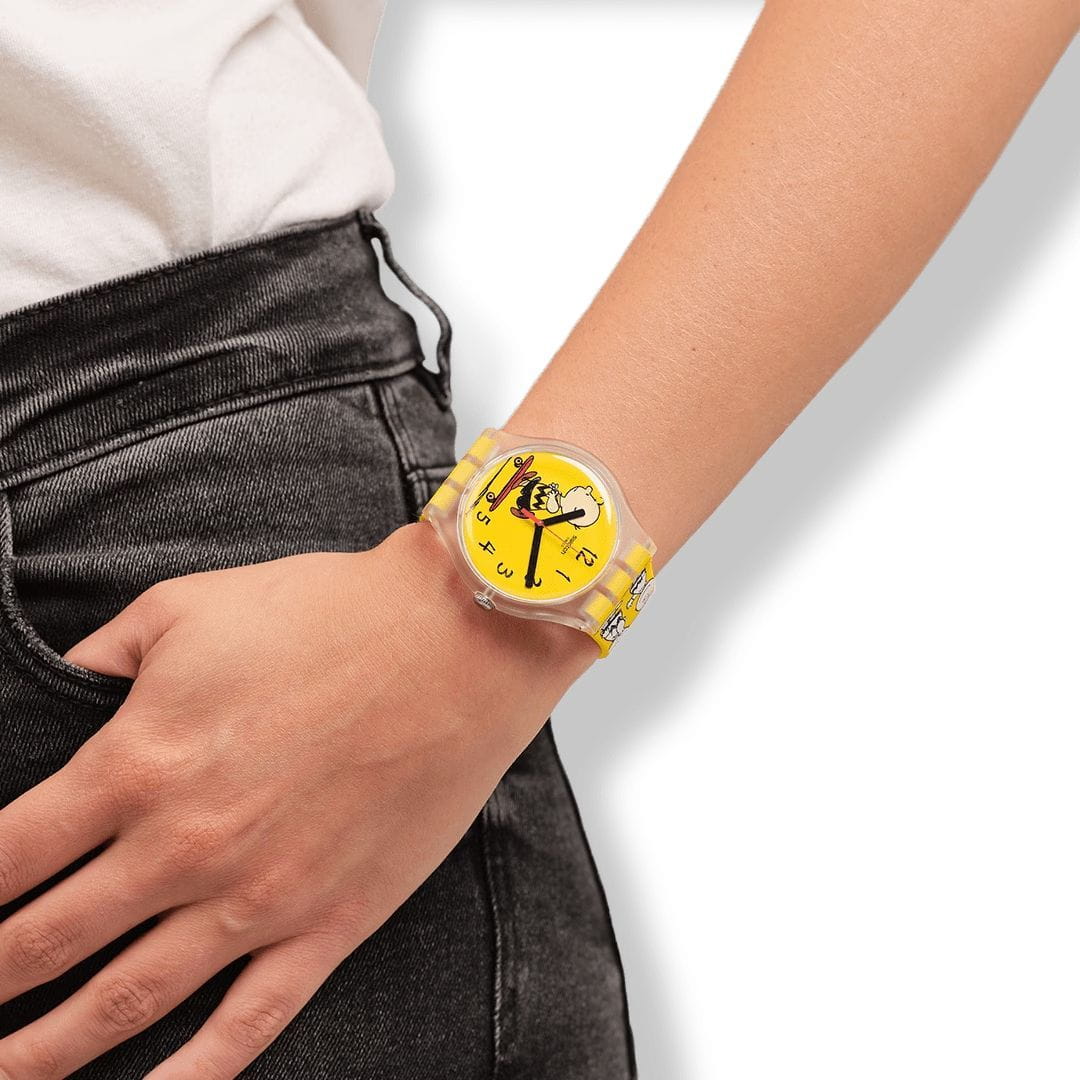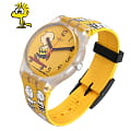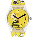 Часы Swatch SO29Z101 — стильный и надежный аксессуар. Эти позитивные часы имеют прозрачный корпус из биоматериала, желтый силиконовый ремешок, черные стрелки и индексы, принт на всей поверхности Swatch X Peanuts. Циферблат покрыт биостеклом. Мерцающий блеск модели обусловлен особым методом гравированной отделки. Ремешок на классической застежке. Внутри часов установлен надежный кварцевый механизм, который обеспечивает точность хода. Эти часы водонепроницаемы до 30 метров, что позволяет не беспокоиться о случайных брызгах или дождевых каплях. Swatch SO29Z101 — это идеальный выбор для тех, кто ценит сочетание стиля, комфорта и функциональности в одном аксессуаре.