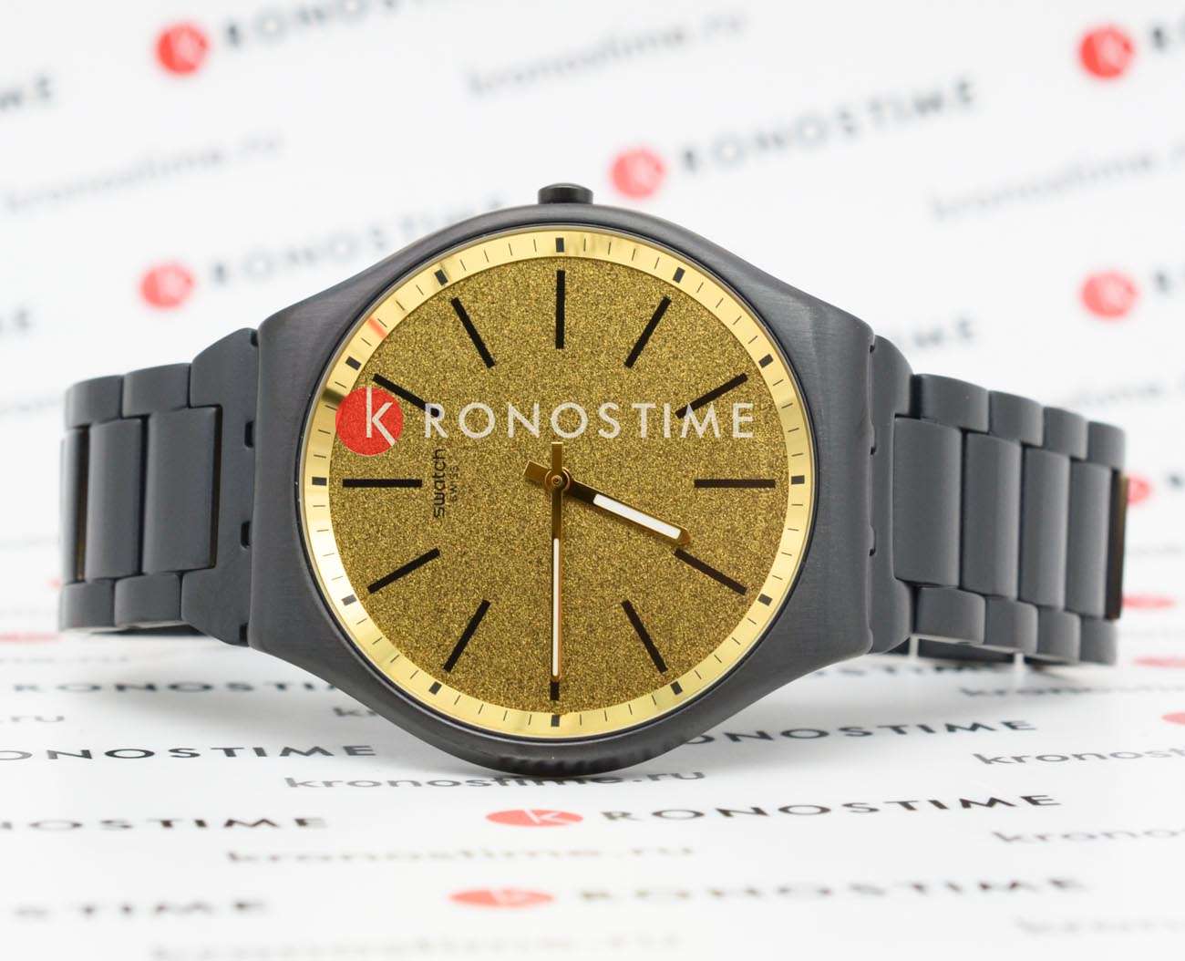 Часы Swatch SS07B109G — это стильный и современный аксессуар для тех, кто ценит лёгкость и комфорт. Часы идеально подойдут как для мужчин, так и для женщин. Эти великолепные ультратонкие часы из нержавеющей стали c PVDPVDУльтратонкое покрытие наносится в технике вакуумного напыления, сочетает в себе нитрид титана особой прочности со слоем золота или оксида хрома. Несёт в себе декоративную или защитную функцию. покрытием имеют золотистый циферблат с металлическим эффектом Reflective Chromatics, который покрыт минеральным стекломМинеральное стеклоМинеральное стекло представляет собой искусственно выращенный минерал кварца. Такое стекло отличается особой устойчивостью к повреждениям и царапинам. Уступает по некоторым качествам сапфировому стеклу. и на котором размещены черные индексы и золотистые стрелки с люминесцентным покрытиемЛюминесцентное покрытиеПозволяет считывать показания времени в темноте. Производители наносят на стрелки, часовые индексы, безель или поверхность циферблата светонакопительный состав, дающий холодное свечение.. Часы заключены в полированный корпус с черным PVDPVDУльтратонкое покрытие наносится в технике вакуумного напыления, сочетает в себе нитрид титана особой прочности со слоем золота или оксида хрома. Несёт в себе декоративную или защитную функцию. покрытием и закреплены на таком же регулируемом браслете c застёжкой «бабочка»Застёжка "бабочка"Такой вид застёжки дополняется предохранителями, помогающими избежать случайного раскрытия браслета. Обладают изящным исполнением. . Водозащита 30 метров делает часы практичными для повседневного использования. Эти часы подойдут для повседневного ношения и станут ярким акцентом в вашем наряде.