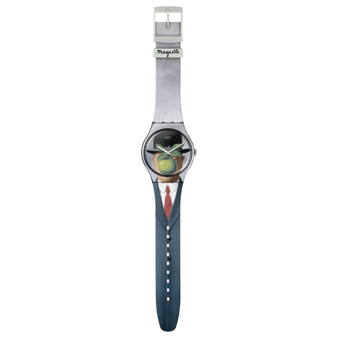 Часы Swatch SUOZ350 — это стильный и современный аксессуар для тех, кто ценит лёгкость и комфорт. Часы идеально подойдут как для мужчин, так и для женщин. На лицевой стороне модели LE FILS DE L'HOMME BY RENE MAGRITTE воспроизведена картина художника-сюрреалиста Рене Магритта «Le Fils de l’homme» («Сын человеческий»), изображение которой простирается по ремешку, корпусу и цветному циферблату. Оборотную сторону ремешка украшает надпись, отсылающая к сюрреалистическому стилю художника: «Ceci est une Swatch avec une pomme», что переводится как «Это часы Swatch с яблоком». Тренчик дополнен принтом с именем художника. Водозащита 30 метров делает часы практичными для повседневного использования. Эти часы подойдут для повседневного ношения и станут ярким акцентом в вашем наряде.