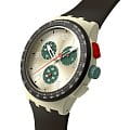 Часы Swatch SUST402 — это стильный и современный аксессуар для тех, кто ценит лёгкость и комфорт. Часы идеально подойдут как для мужчин, так и для женщин. Этот хронографХронографФункция позволяет измерять отрезки времени с особой точностью: часы, минуты, секунды. Верным признаком хронографа является наличие на циферблате 3 дополнительных окошек-счётчиков. привлекает внимание серебристым циферблатом c радиальной полировкой и тёмно-зелёными дополнительными циферблатами, светящимися в темноте благодаря люминесцентному покрытиюЛюминесцентное покрытиеПозволяет считывать показания времени в темноте. Производители наносят на стрелки, часовые индексы, безель или поверхность циферблата светонакопительный состав, дающий холодное свечение. часовой и минутной, красными секундной и вспомогательными стрелками, а также окошком указателем даты в положении между «4» и «3» часами. Матовый бежевый корпус располагает тёмно-коричневым безелемБезельВнешний ободок, закрепляющий стекло. В спортивных часах так называется поворотное кольцо с делениями на циферблате, выполняет роль таймера – замеряет отрезки времени на шкале. Неподвижный безель – элемент декора. Однонаправленно вращающийся безель на дайверских часах позволяет фиксировать моменты погружения и выныривания на поверхность. с белой тахиметрической шкалой и разноцветной заводной головкой и кнопками. Его дополняет матовый тёмно-коричневый ремешок с тренчиком в тон и матовая бежевая пряжка. Водозащита 30 метров делает часы практичными для повседневного использования. Эти часы подойдут для повседневного ношения и станут ярким акцентом в вашем наряде.