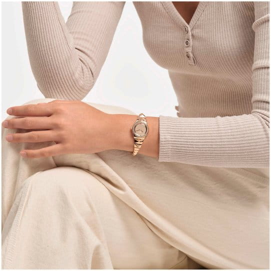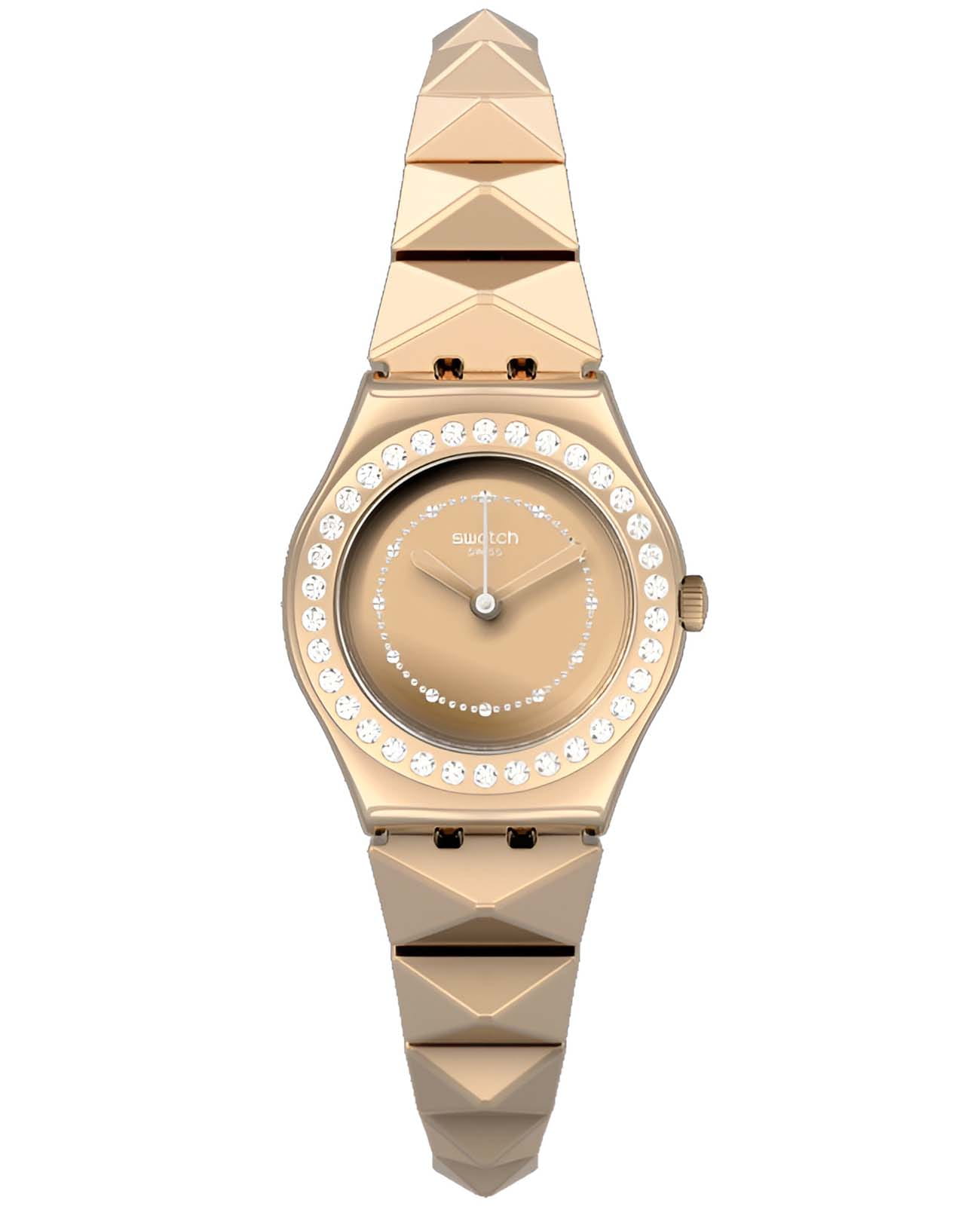 Часы Swatch YSG169G — это стильный и современный аксессуар для тех, кто ценит лёгкость и комфорт. Эти часы изготовлены из нержавеющей стали с PVDPVDУльтратонкое покрытие наносится в технике вакуумного напыления, сочетает в себе нитрид титана особой прочности со слоем золота или оксида хрома. Несёт в себе декоративную или защитную функцию. покрытием цвета розового золота, имеют регулируемый ремешок и циферблат цвета розового золота с зеркальным эффектом. Золотистый безельБезельВнешний ободок, закрепляющий стекло. В спортивных часах так называется поворотное кольцо с делениями на циферблате, выполняет роль таймера – замеряет отрезки времени на шкале. Неподвижный безель – элемент декора. Однонаправленно вращающийся безель на дайверских часах позволяет фиксировать моменты погружения и выныривания на поверхность. покрыт кристаллами. Водозащита 30 метров делает часы практичными для повседневного использования. Эти часы подойдут для повседневного ношения и станут ярким акцентом в вашем наряде.