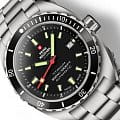 Мужские швейцарские механические часы с автоподзаводом Swiss Military by Chrono Titanium 300 SMA34100.01. Сапфировое стеклоСапфировое стеклоПрочный и надёжный материал из кристалла сапфира синтетического происхождения, характеризующийся особой твёрдостью и устойчивостью к царапинам и повреждениям. устойчивое к появлению царапин, обладающее высокой прозрачностью. Корпус часов изготовлен из титана. Вращающийся безельБезельВнешний ободок, закрепляющий стекло. В спортивных часах так называется поворотное кольцо с делениями на циферблате, выполняет роль таймера – замеряет отрезки времени на шкале. Неподвижный безель – элемент декора. Однонаправленно вращающийся безель на дайверских часах позволяет фиксировать моменты погружения и выныривания на поверхность. из высокотехнологичной керамикиВысокотехнологичная керамикаИнновационный запатентованный Rado материал с гладкой или матовой поверхностью. Керамика за счёт кристаллической структуры обладает повышенной устойчивостью от возникновения царапин. Материал способен принимать температуру тела человека, обеспечивая невероятный комфорт при ношении.. Индикация даты на позиции трех часов. Стрелки и метки с люминесцентной подсветкойЛюминесцентное покрытиеПозволяет считывать показания времени в темноте. Производители наносят на стрелки, часовые индексы, безель или поверхность циферблата светонакопительный состав, дающий холодное свечение.. Класс водозащиты: 300 метров, позволит плавать, нырять и заниматься другими водными видами спорта. Титановый браслет на раскладной застёжкеРаскладная застёжкаТакой тип застёжки используется только на браслетах из металла. Она никогда не раскрывается полностью, происходит разделение на 2 и более частей. Раскладывающая застёжка снизит вероятность потери часов к минимуму..