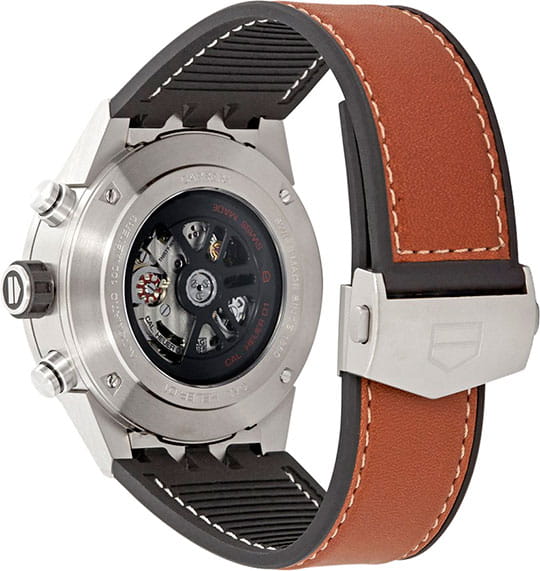 Наручные часы-хронографХронографФункция позволяет измерять отрезки времени с особой точностью: часы, минуты, секунды. Верным признаком хронографа является наличие на циферблате 3 дополнительных окошек-счётчиков. TAG Heuer Carrera CAR2A8A.FT6072 олицетворяют собой спортивный стиль и высокие технологии. Механический механизм (автоматический калибр) CALIBRE HEUER 01 с высокой точностью производится целиком в стенах компании. Титановый корпус с тахиметрической шкалой, расположенной на безеле. Диаметр часов 45 мм.Сапфировое стеклоСапфировое стеклоПрочный и надёжный материал из кристалла сапфира синтетического происхождения, характеризующийся особой твёрдостью и устойчивостью к царапинам и повреждениям. устойчивое к появлению царапин, обладающее высокой прозрачностью.Люминесцентная подсветкаЛюминесцентное покрытиеПозволяет считывать показания времени в темноте. Производители наносят на стрелки, часовые индексы, безель или поверхность циферблата светонакопительный состав, дающий холодное свечение. стрелок и меток на циферблате. Класс водозащиты: 100 метров, позволит плавать, нырять и заниматься другими водными видами спорта. Раскладная застёжкаРаскладная застёжкаТакой тип застёжки используется только на браслетах из металла. Она никогда не раскрывается полностью, происходит разделение на 2 и более частей. Раскладывающая застёжка снизит вероятность потери часов к минимуму.. Запас хода составляет 50 часов.