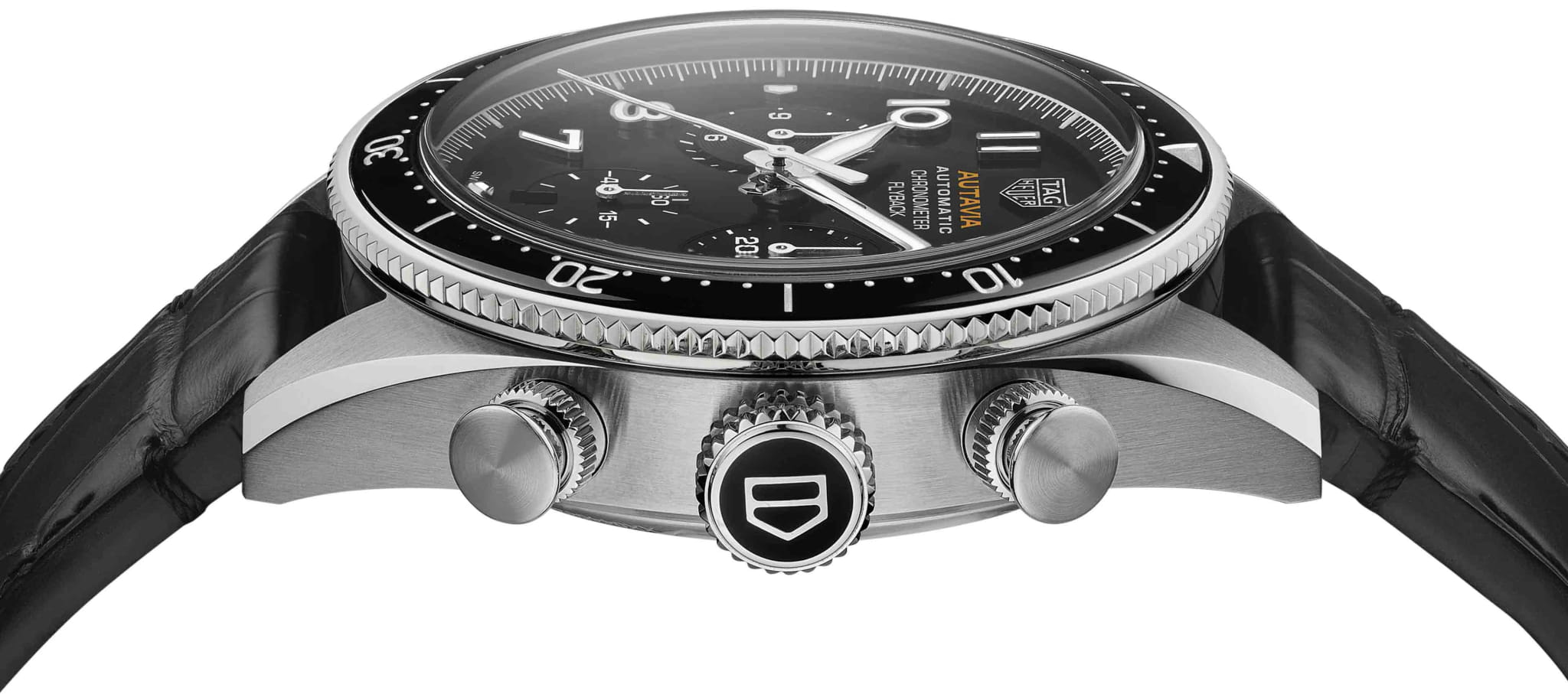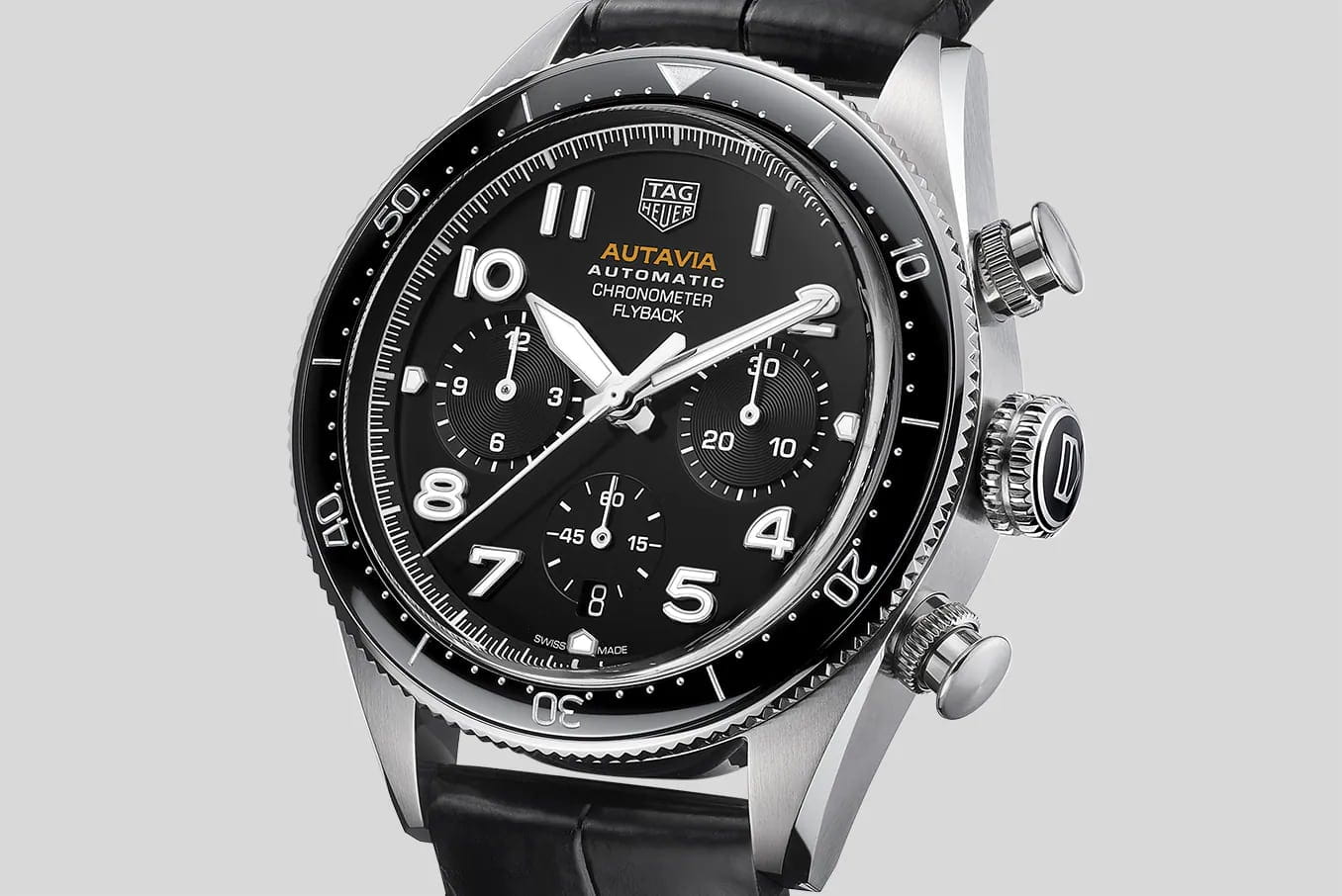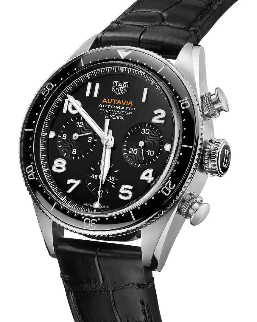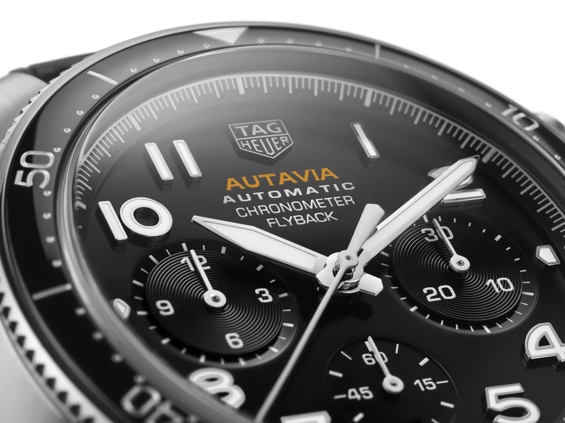 Новые мужские часы-хронографХронографФункция позволяет измерять отрезки времени с особой точностью: часы, минуты, секунды. Верным признаком хронографа является наличие на циферблате 3 дополнительных окошек-счётчиков. Autavia диаметром 42 мм отличаются непринужденным и эффектным дизайном и отлично подходят для повседневного использования. Оснащенные сверхточным хронометром Calibre Heuer 02 Flyback, сертифицированным COSCСертификат COSCОфициальный сертификат, подтверждающий то, что часы ходят с особо высокой точностью. Для получения документа часы подвергаются тестовым испытаниям, разработанным швейцарским институтом тестирования хронометров COSC. Допустимая норма для механических часов -4/+6 секунд в день, для кварцевых моделей +/- 0,07 секунд в день., эти заново изобретенные часы подходят для героических приключений. Механический механизм (автоматический калибр) с высокой точностью. Циферблат с люминесцентным покрытиемЛюминесцентное покрытиеПозволяет считывать показания времени в темноте. Производители наносят на стрелки, часовые индексы, безель или поверхность циферблата светонакопительный состав, дающий холодное свечение. стрелок и меток, дополнен сапфировым стекломСапфировое стеклоПрочный и надёжный материал из кристалла сапфира синтетического происхождения, характеризующийся особой твёрдостью и устойчивостью к царапинам и повреждениям., устойчивым к появлению царапин и обладающее высокой прозрачностью. Корпус часов изготовлен из стали, серебристого цвета. Классический черный циферблат в стиле кокпита невероятно удобочитаем благодаря ярким часовым меткам, стрелкам и индексам с белым покрытием Super-LumiNova®. Водонепроницаемость до 100 метров, прочный стальной корпус оснащен прочным черным керамическим безелем и подходящим черным ремешком из кожи аллигатора.