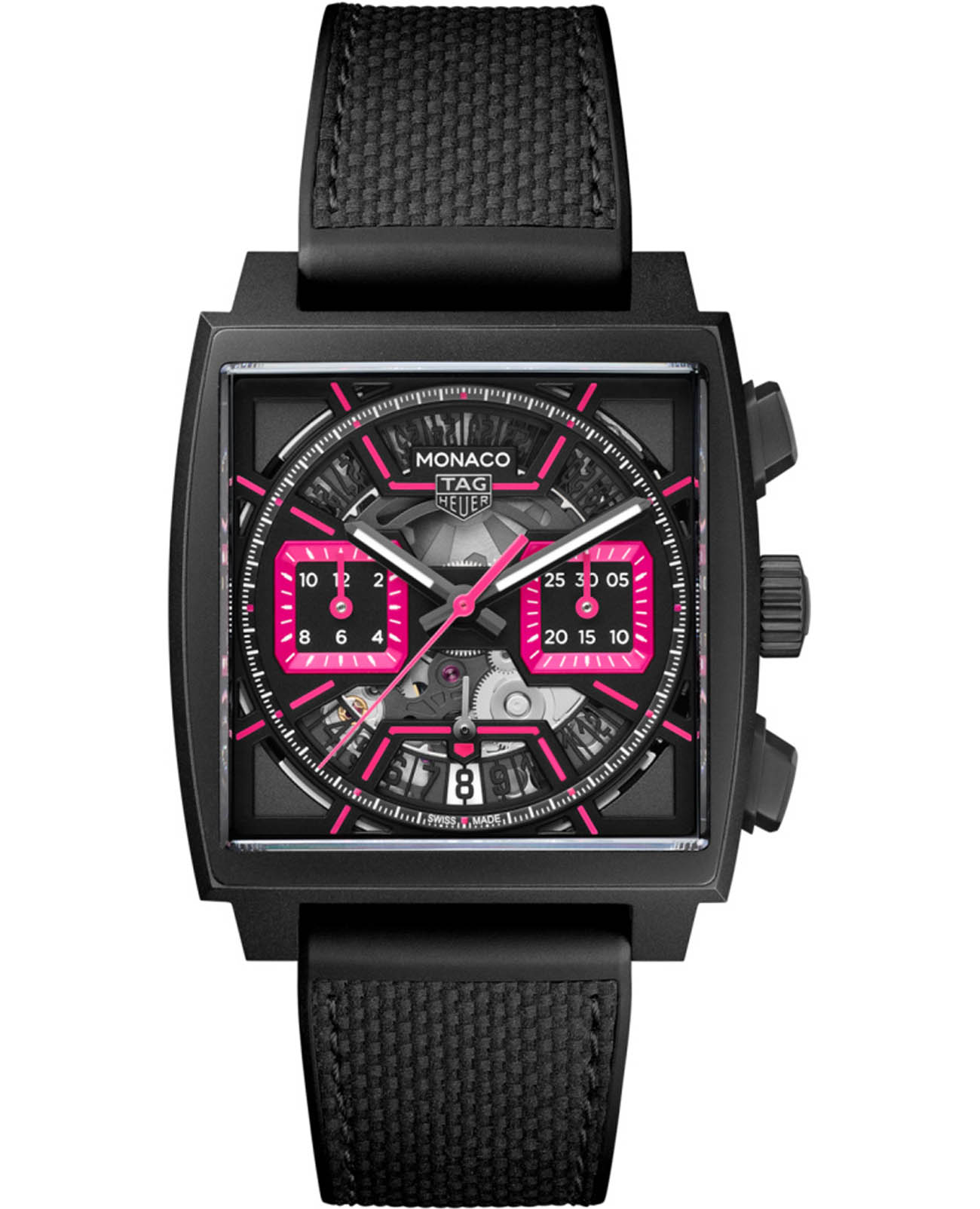 Часы TAG Heuer Monaco Chronograph CBL218B.FT6236. Эта потрясающая версия поднимает классическую модель Carrera на новые высоты. Высокая функциональность в нем сочетается с изысканной элегантностью, в то время как сапфировое стеклоСапфировое стеклоПрочный и надёжный материал из кристалла сапфира синтетического происхождения, характеризующийся особой твёрдостью и устойчивостью к царапинам и повреждениям. обеспечивает сверхточную разборчивость.Часы-хронографХронографФункция позволяет измерять отрезки времени с особой точностью: часы, минуты, секунды. Верным признаком хронографа является наличие на циферблате 3 дополнительных окошек-счётчиков.. Механический механизм (автоматический калибр) с высокой точностью. Класс водозащиты: 100 метров, позволит плавать, нырять и заниматься другими водными видами спорта. Стрелки с люминесцентным покрытиемЛюминесцентное покрытиеПозволяет считывать показания времени в темноте. Производители наносят на стрелки, часовые индексы, безель или поверхность циферблата светонакопительный состав, дающий холодное свечение.. Корпус часов изготовлен из титана с DLC-покрытиемDLC-покрытиеDiamond like carbon - одно из лучших видов покрытия, представляющее собой углерод с алмазными свойствами. На поверхность материала наносятся распавшиеся молекулы углерода, превращающиеся в плёнку из алмазоподобных связей, которая перенимает твёрдость алмаза.. Браслет из каучука на раскладной застёжкеРаскладная застёжкаТакой тип застёжки используется только на браслетах из металла. Она никогда не раскрывается полностью, происходит разделение на 2 и более частей. Раскладывающая застёжка снизит вероятность потери часов к минимуму..