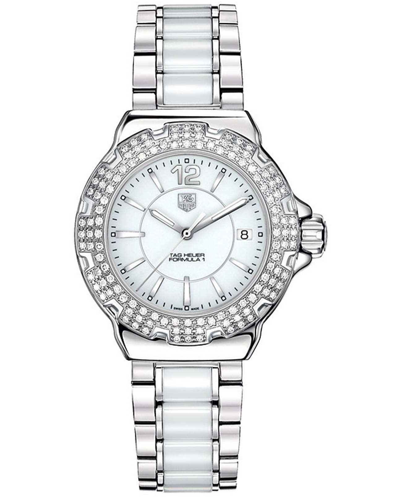 Швейцарские женские часы TAG Heuer Formula 1 — это воплощение элегантности, роскоши и точности. Модель WAH1218.BA0861 из коллекции Formula 1 вдохновлена миром автоспорта, сочетая в себе динамику, выносливость и безупречный стиль. Корпус выполнен из высококачественной нержавеющей стали 316L и керамики, что обеспечивает долговечность и устойчивость к внешним воздействиям. Циферблат с эффектом sunray добавляет модели особую привлекательность и элегантность. Циферблат защищен прочным сапфировым стекломСапфировое стеклоПрочный и надёжный материал из кристалла сапфира синтетического происхождения, характеризующийся особой твёрдостью и устойчивостью к царапинам и повреждениям., которое не царапается при механическом воздействии и гарантирует четкую видимость показаний в любых условиях. Безель декорирован бриллиантами, что делает модель особенно роскошной и премиальной. Окошко даты расположено в удобном месте на циферблате, добавляя функциональности. Механизм часов кварцевый, что гарантирует исключительную точность хода. Водозащита до 20 атм (WR200) делает эти часы подходящими для плавания и других водных видов спорта. Браслет из нержавеющей стали и керамики оснащен надежной раскладывающейся застежкой с кнопками Раскладная застёжкаТакой тип застёжки используется только на браслетах из металла. Она никогда не раскрывается полностью, происходит разделение на 2 и более частей. Раскладывающая застёжка снизит вероятность потери часов к минимуму., обеспечивающей комфортную фиксацию на запястье.