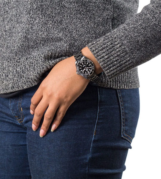 TAG Heuer Aquaracer WAY1390.BH0716 — элегантные женские часы, сочетающие стиль и функциональность. Корпус диаметром 35 мм выполнен из стали с чёрной матовой керамикой, обеспечивающей лёгкость и устойчивость к царапинам. Чёрный циферблат оснащён накладными часовыми метками и стрелками с люминесцентным покрытиемЛюминесцентное покрытиеПозволяет считывать показания времени в темноте. Производители наносят на стрелки, часовые индексы, безель или поверхность циферблата светонакопительный состав, дающий холодное свечение., обеспечивающим отличную читаемость в любых условиях освещения. Часы оснащены точным кварцевым механизмом, обеспечивающим стабильное отображение времени. Функциональность включает индикацию часов, минут, секунд и даты, расположенной на отметке «3 часа». БезельБезельВнешний ободок, закрепляющий стекло. В спортивных часах так называется поворотное кольцо с делениями на циферблате, выполняет роль таймера – замеряет отрезки времени на шкале. Неподвижный безель – элемент декора. Однонаправленно вращающийся безель на дайверских часах позволяет фиксировать моменты погружения и выныривания на поверхность. однонаправленный вращающийся, выполнен из стали и керамики и является устойчивыми к царапинам. Водозащита до 300 метров (30 бар) делает модель подходящей для дайвинга и активного образа жизни. Браслет из чёрной матовой керамики оснащён раскладной застёжкойРаскладная застёжкаТакой тип застёжки используется только на браслетах из металла. Она никогда не раскрывается полностью, происходит разделение на 2 и более частей. Раскладывающая застёжка снизит вероятность потери часов к минимуму. из нержавеющей стали с кнопками для дополнительной безопасности.