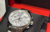 Мужские швейцарские часы оснащены высокоточным хронографом, три дополнительных окошка на циферблате придают модели спортивный облик.