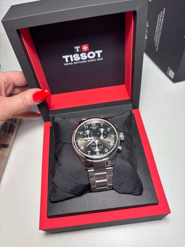 Наручные часы относятся к категории самых больших хронографов Tissot, диаметр их корпуса составляет 45 мм. Такая модель подчеркнёт любой образ и позволит выделяться среди окружающих. Циферблат в чёрном цвете отличается лаконичным исполнением, люминесцентное покрытие облегчает пользование часами в темноте. Сапфировое стекло отличается устойчивостью к появлению царапин. Кварцевый механизм ETA G10.212. Габариты: 45 x 45 x 11 мм.